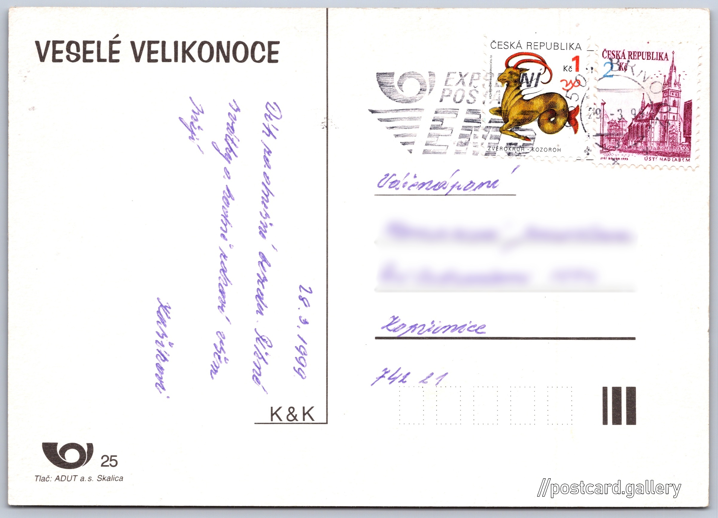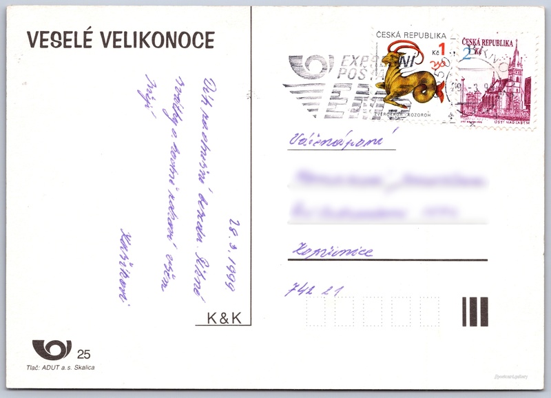 Veselé velikonoce Pokud chcete vidět pohlednice ve vyšším rozlišení nebo zobrazovat jejich zadní stranu, tak se prosím nejdříve přihlašte Přihlásit Zaregistrovat VESELÉ VELIKONOCE VESELÉ VELIKONOCE Jazyk tištěného textu na pohlednici: čeština Vydavatel: K & K (Slovensko) Odhadované datum vydání pohlednice: 1996 - 1999 Pomozte nám zpřesnit rok vzniku pohlednice Velikost (š x v) a tvar pohlednice: 148 x 105 mm (5.83" x 4.13"), obdélník Prošlá poštou:Datum na razítku: 29.3.1999 Ceny: Vyplacené známky: 3,00 Kč (CZK) Kódy na pohlednici: ČP 25 DiskuseVložit příspěvek Přidat novou složku ... Spravovat složky ...