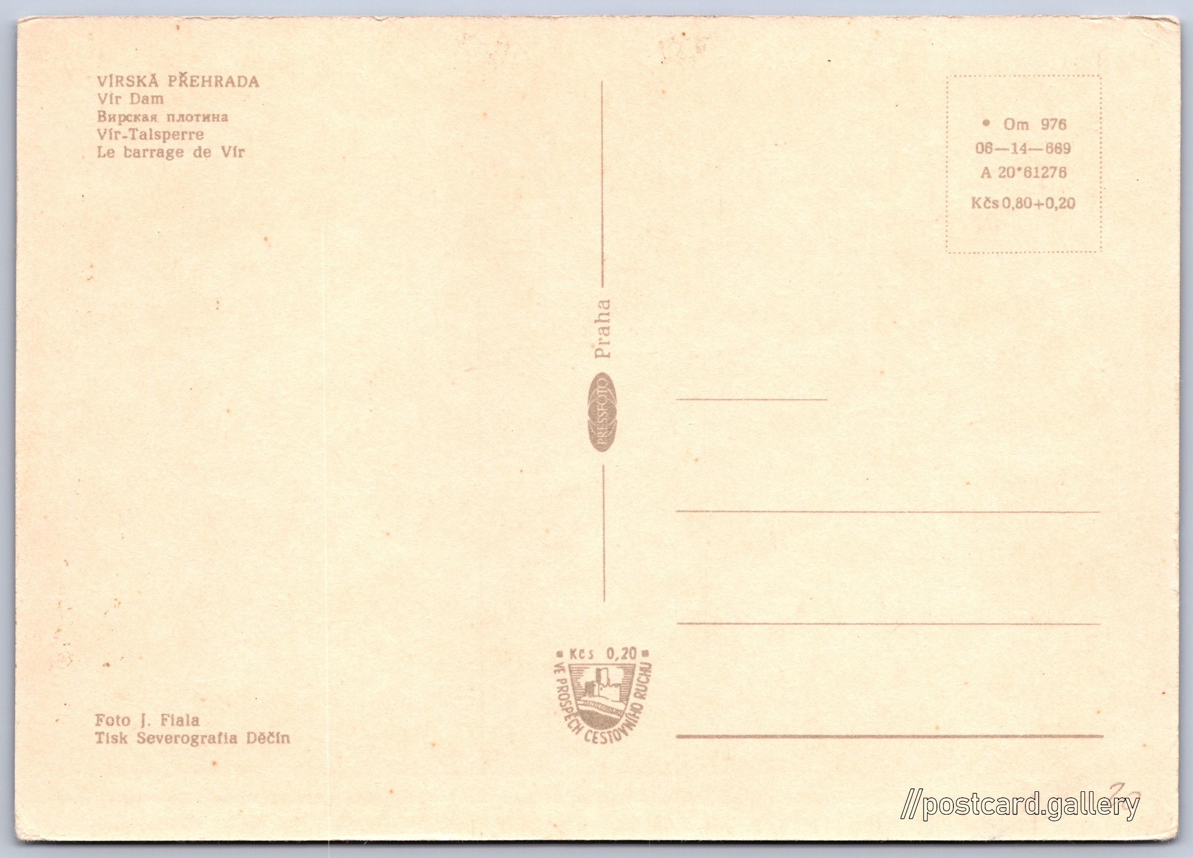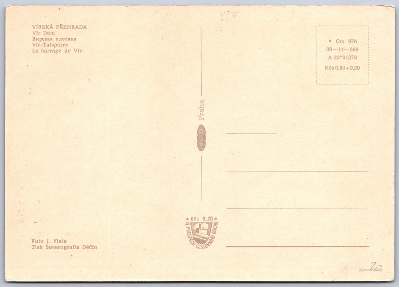 Vírská přehrada, pohled na hráz Pokud chcete vidět pohlednice ve vyšším rozlišení nebo zobrazovat jejich zadní stranu, tak se prosím nejdříve přihlašte Přihlásit Zaregistrovat VÍRSKÁ PŘEHRADA- Vír Dam- Вирская плотина- Vir-Talsperre- Le barrage de Vír Jazyk tištěného textu na pohlednici: čeština Vír, Žďár nad Sázavou ukázat na mapě V blízkém okolí místa zobrazeného na pohlednici lze najít 2 jiné pohlednice. Zobrazit blízké pohlednice Vydavatel: PressFoto Praha (Československo) Rok vydání pohlednice: 1966 Velikost (š x v) a tvar pohlednice: 148 x 105 mm (5.83" x 4.13"), obdélník Osoby spjaté s touto pohlednicí: J. Fiala(Autor fotografie) Čistá pohlednice (neprošlá poštou) Ceny: Cena pohlednice: 0,80 Kčs (CSK) (+0,20 Kčs přípl. na tur. ruch) Kódy na pohlednici: • Om 976 06-14-669 A 20*61276 DiskuseVložit příspěvek Přidat novou složku ... Spravovat složky ...
