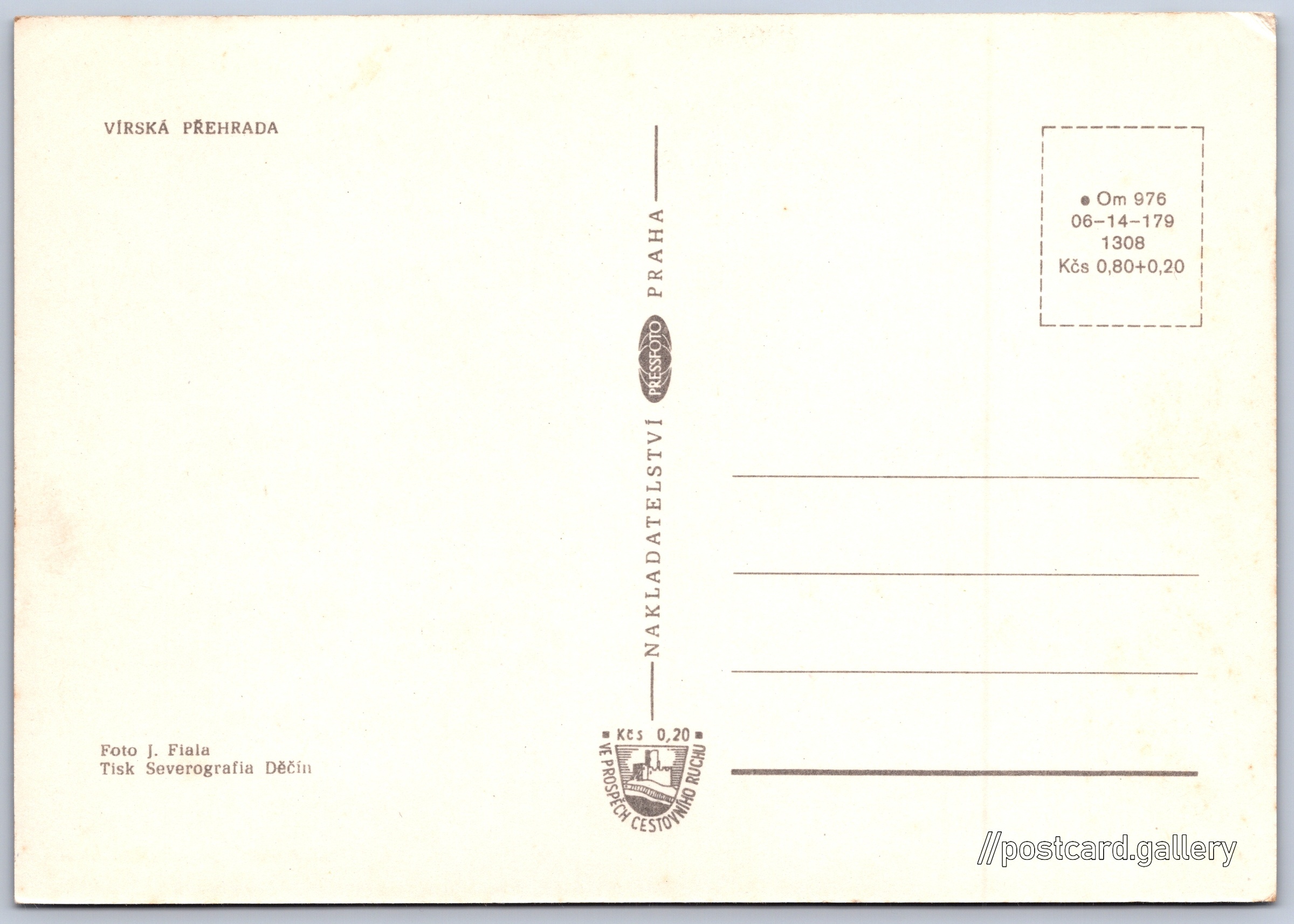 Cena pohlednice: 0,80 Kčs (CSK) (+0,20 Kčs přípl. na tur. ruch)