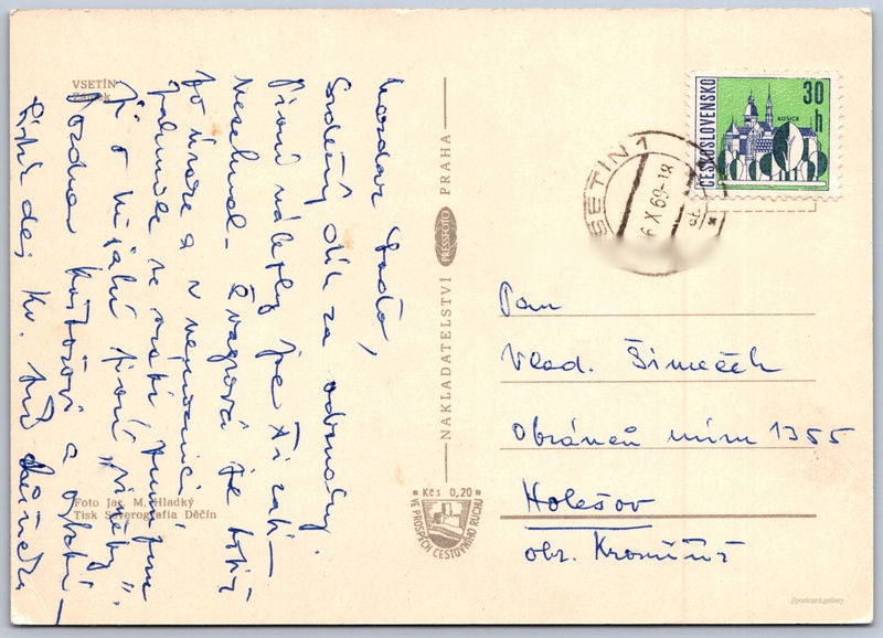 Vsetín, zámek Pokud chcete vidět pohlednice ve vyšším rozlišení nebo zobrazovat jejich zadní stranu, tak se prosím nejdříve přihlašte Přihlásit Zaregistrovat VSETÍNZámek Jazyk tištěného textu na pohlednici: čeština Horní náměstí, Vsetín, Vsetín ukázat na mapě Vydavatel: PressFoto Praha (Československo) Odhadované datum vydání pohlednice: 1966 - 1969 Pomozte nám zpřesnit rok vzniku pohlednice Velikost (š x v) a tvar pohlednice: 148 x 105 mm (5.83" x 4.13"), obdélník Osoby spjaté s touto pohlednicí: Jar. M. Hladký(Autor fotografie) Prošlá poštou:Datum na razítku: 16.10.1969 Ceny: Příplatek na tur. ruch: 0,20 Kčs (CSK))Vyplacené známky: 0,30 Kčs (CSK) DiskuseVložit příspěvek Přidat novou složku ... Spravovat složky ...