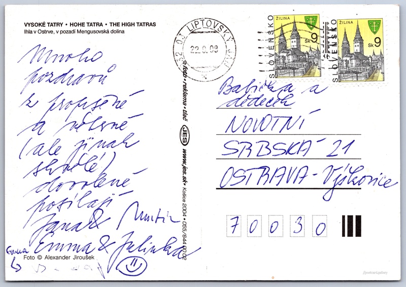 Vysoké Tatry, Ihla v Ostrve Pokud chcete vidět pohlednice ve vyšším rozlišení nebo zobrazovat jejich zadní stranu, tak se prosím nejdříve přihlašte Přihlásit Zaregistrovat Vysoké Tatry VYSOKÉ TATRY - HOHE TATRA - THE HIGH TATRASIhla v Ostrve, v pozadí Mengusovská dolina Jazyk tištěného textu na pohlednici: slovenština Ihla v Ostrve (1890 m), Hora, výškový bod, Vysoké Tatry - Štrbské Pleso, Slovensko ukázat na mapě V blízkém okolí místa zobrazeného na pohlednici lze najít 110 jiných pohlednic. Zobrazit blízké pohlednice Vydavatel: JES, Košice (Slovensko) Odhadované datum vydání pohlednice: 2005 - 2008 Pomozte nám zpřesnit rok vzniku pohlednice Velikost (š x v) a tvar pohlednice: 148 x 102 mm (5.83" x 4.02"), obdélník Osoby spjaté s touto pohlednicí: Alexander Jiroušek(Autor fotografie) Prošlá poštou:Datum na razítku: 22.9.2008 Ceny: Vyplacené známky: 18,00 Sk (SKK) DiskuseVložit příspěvek Přidat novou složku ... Spravovat složky ...