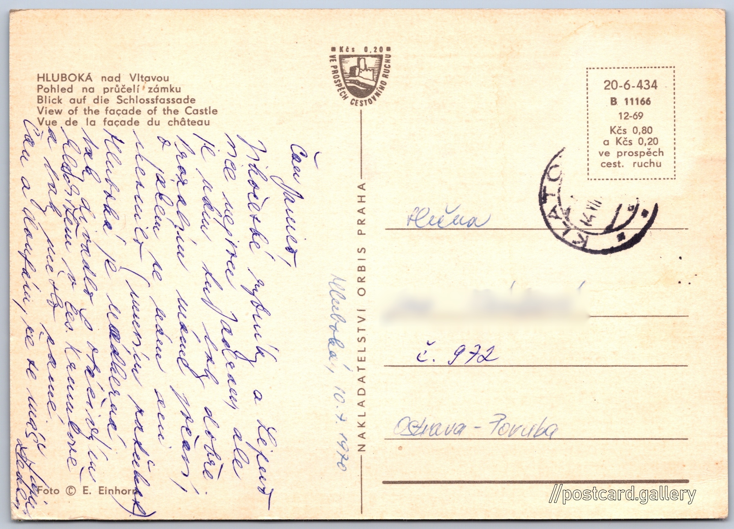 Zámek Hluboká nad Vltavou Pokud chcete vidět pohlednice ve vyšším rozlišení nebo zobrazovat jejich zadní stranu, tak se prosím nejdříve přihlašte Přihlásit Zaregistrovat HLUBOKÁ nad Vltavou- Pohled na průčelí zámku- Blick auf die Schlossfassade- View of the façade of the Castle- Vue de la façade du château Jazyky tištěného textu na pohlednici: čeština, němčina, angličtina, francouzština Hluboká nad Vltavou, České Budějovice ukázat na mapě V blízkém okolí místa zobrazeného na pohlednici lze najít 12 jiných pohlednic. Zobrazit blízké pohlednice Vydavatel: Nakladatelství Orbis (Československo) Rok vydání pohlednice: prosinec, 1969 Velikost (š x v) a tvar pohlednice: 148 x 105 mm (5.83" x 4.13"), obdélník Osoby spjaté s touto pohlednicí: Erich Einhorn(Autor fotografie) Prošlá poštou:Datum na razítku: 14.7.1970Datum napsání pohledu: 10.7.1970 Ceny: Cena pohlednice: 0,80 Kčs (CSK) (+0,20 Kčs přípl. na tur. ruch) Kódy na pohlednici: 20-6-434 B 11166 12-69 DiskuseVložit příspěvek Přidat novou složku ... Spravovat složky ...