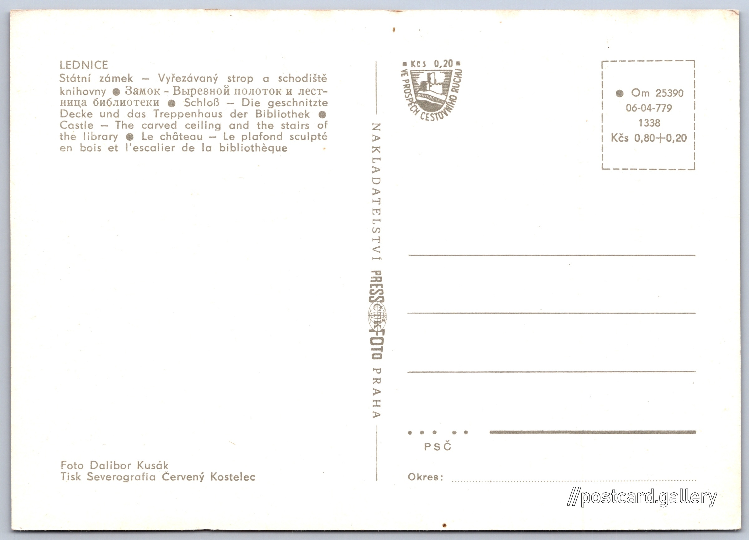 Jazyky tištěného textu na pohlednici: