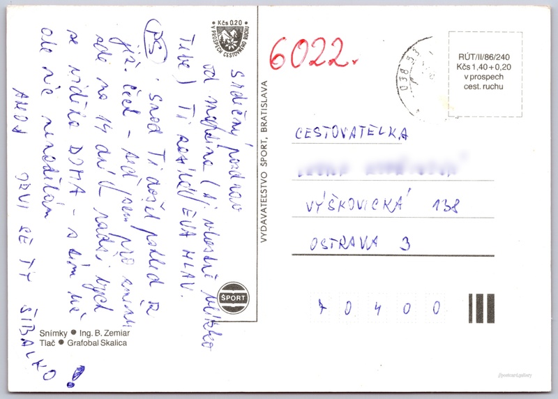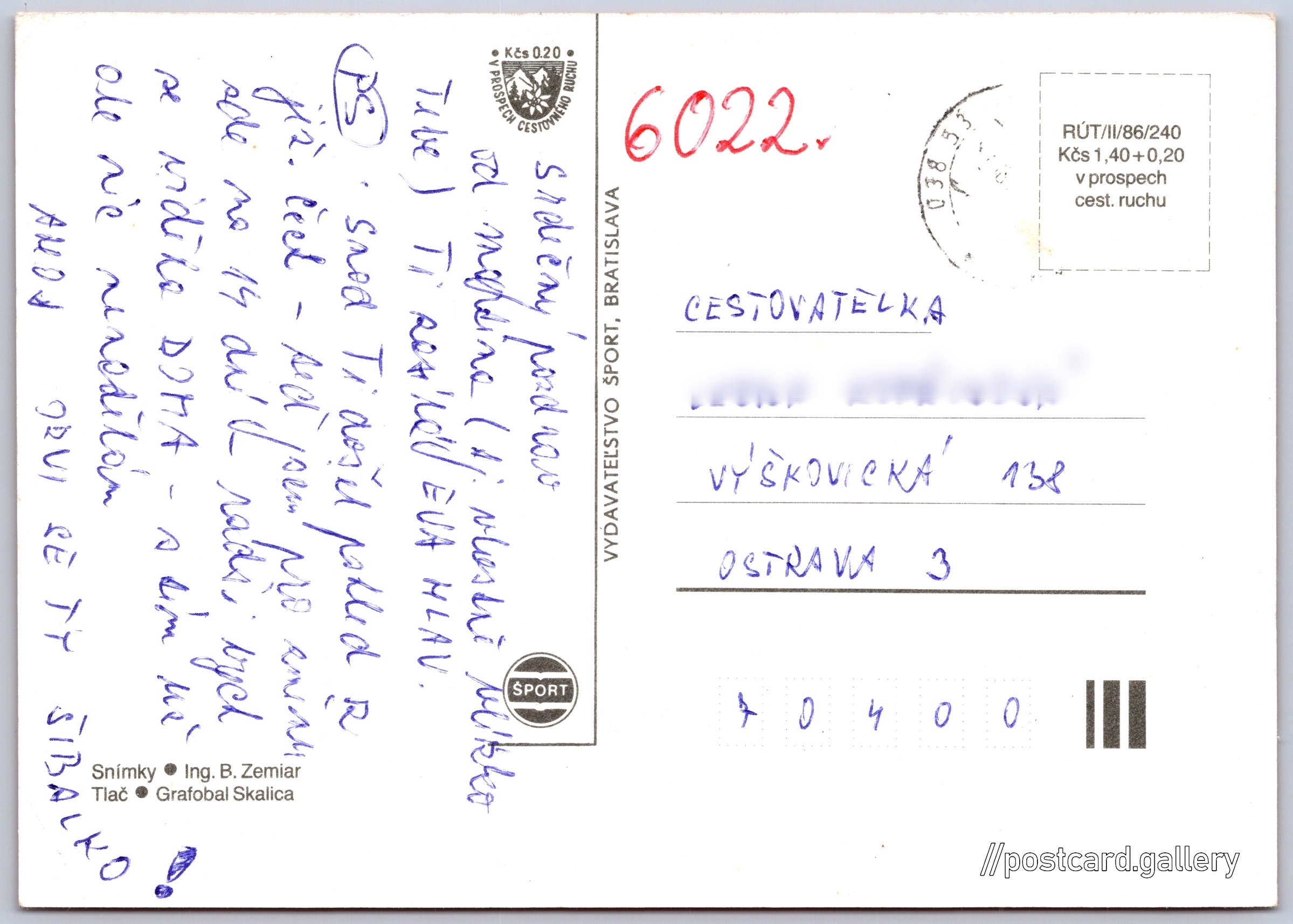 Cena pohlednice: 1,40 Kčs (CSK) (+0,20 Kčs přípl. na tur. ruch)