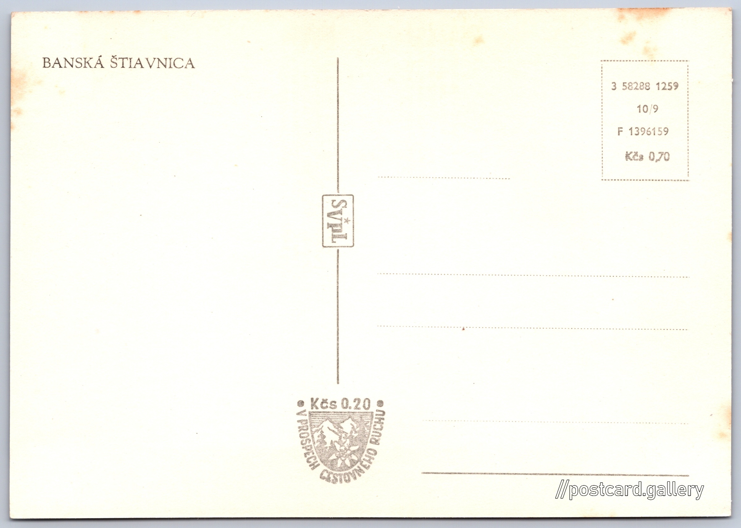 Cena pohlednice: 0,70 Kčs (CSK) (+0,20 Kčs přípl. na tur. ruch)