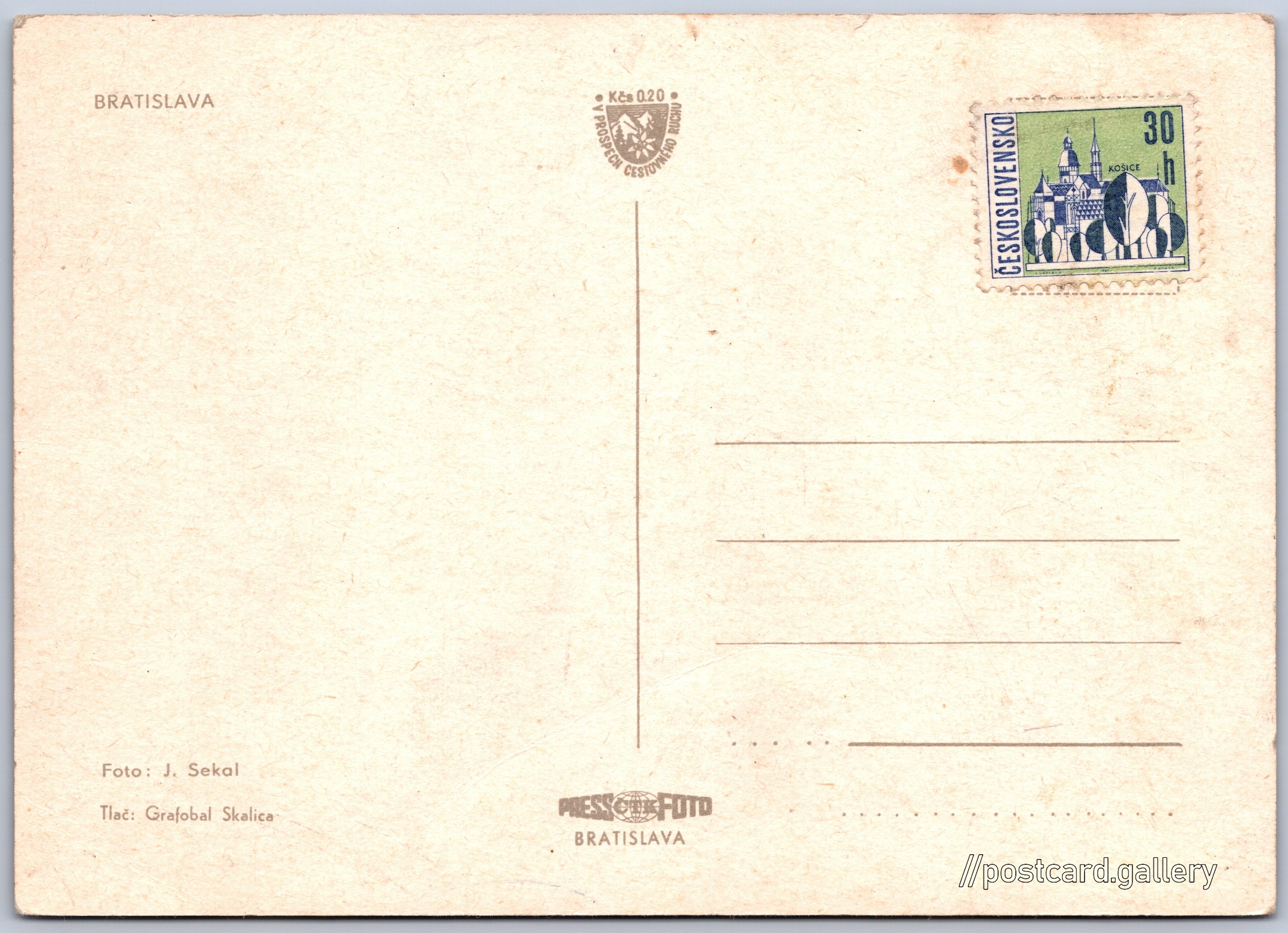 Bartislava, most SNP 3/43 Pokud chcete vidět pohlednice ve vyšším rozlišení nebo zobrazovat jejich zadní stranu, tak se prosím nejdříve přihlašte Přihlásit Zaregistrovat BRATISLAVA Jazyk tištěného textu na pohlednici: slovenština Most Slovenského národního povstání ukázat na mapě V blízkém okolí místa zobrazeného na pohlednici lze najít 43 jiných pohlednic. Zobrazit blízké pohlednice Vydavatel: PressFoto Praha (Československo) Datum vydání není známo Pomozte nám odhadnout datum vzniku pohlednice Velikost (š x v) a tvar pohlednice: 147 x 105 mm (5.79" x 4.13"), obdélník Osoby spjaté s touto pohlednicí: Josef Sekal(Autor fotografie) Čistá pohlednice (neprošlá poštou) Ceny: Příplatek na tur. ruch: 0,20 Kčs (CSK)) DiskuseVložit příspěvek Přidat novou složku ... Spravovat složky ...
