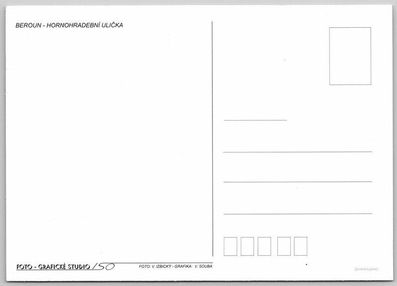 Beroun, Hornohradební ulička 1/5 Pokud chcete vidět pohlednice ve vyšším rozlišení nebo zobrazovat jejich zadní stranu, tak se prosím nejdříve přihlašte Přihlásit Zaregistrovat BEROUN - HORNOHRADEBNÍ ULIČKA Jazyk tištěného textu na pohlednici: čeština Hornohradební 97, Beroun, 266 01, Beroun ukázat na mapě V blízkém okolí místa zobrazeného na pohlednici lze najít 5 jiných pohlednic. Zobrazit blízké pohlednice Vydavatel: Foto - Grafické Studio SO (Česko) Datum vydání není známo Pomozte nám odhadnout datum vzniku pohlednice Velikost (š x v) a tvar pohlednice: 147 x 105 mm (5.79" x 4.13"), obdélník Osoby spjaté s touto pohlednicí: V. Souba(Design pohlednice) V. Izbický(Autor fotografie) Čistá pohlednice (neprošlá poštou) DiskuseVložit příspěvek Přidat novou složku ... Spravovat složky ...