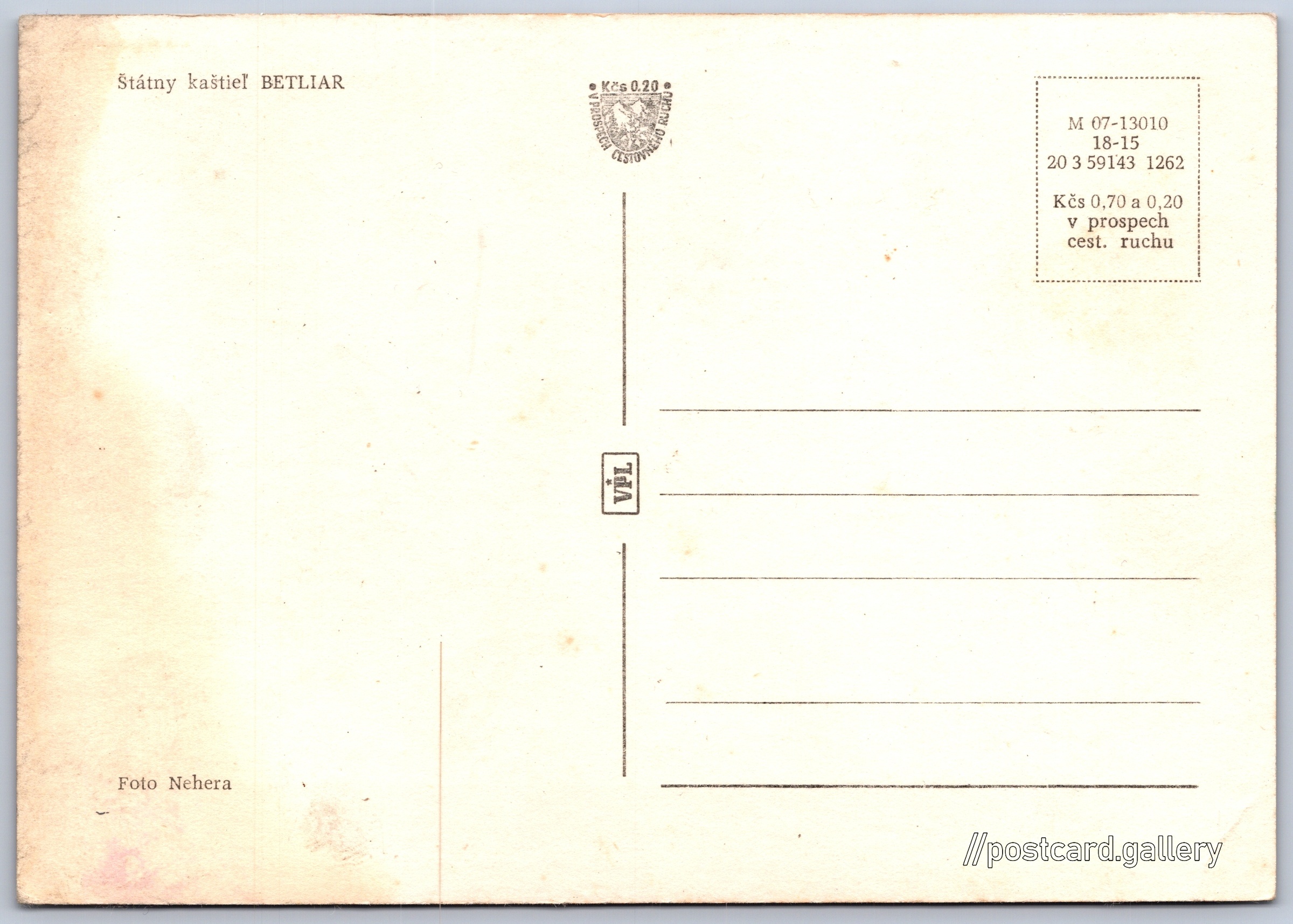 Cena pohlednice: 0,70 Kčs (CSK) (+0,20 Kčs přípl. na tur. ruch)