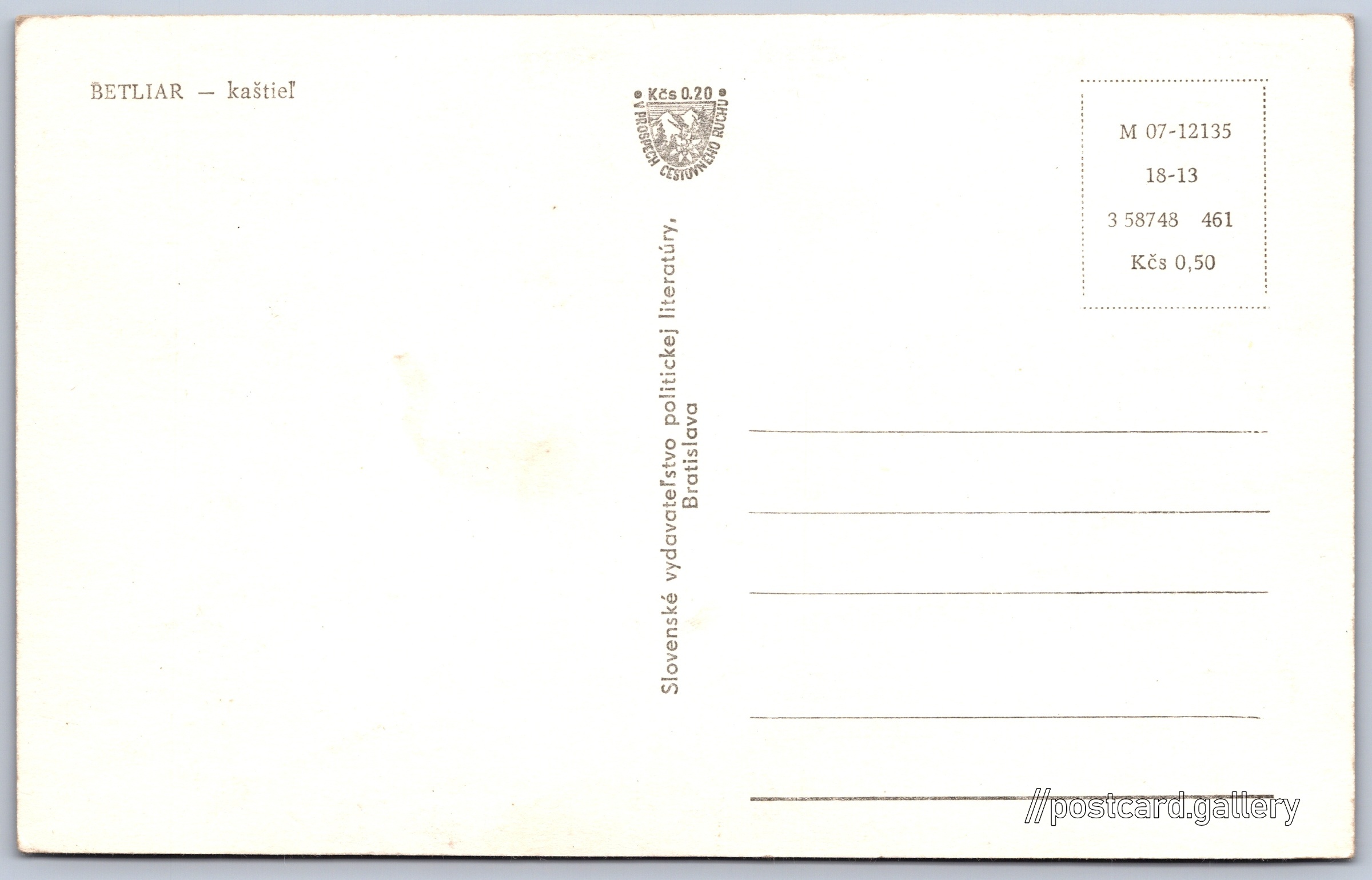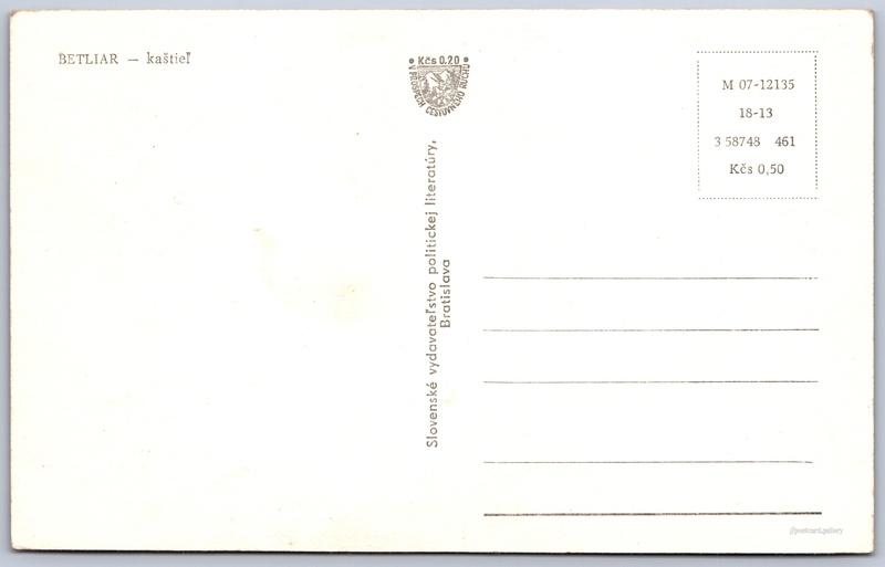 Cena pohlednice: 0,50 Kčs (CSK) (+0,20 Kčs přípl. na tur. ruch)