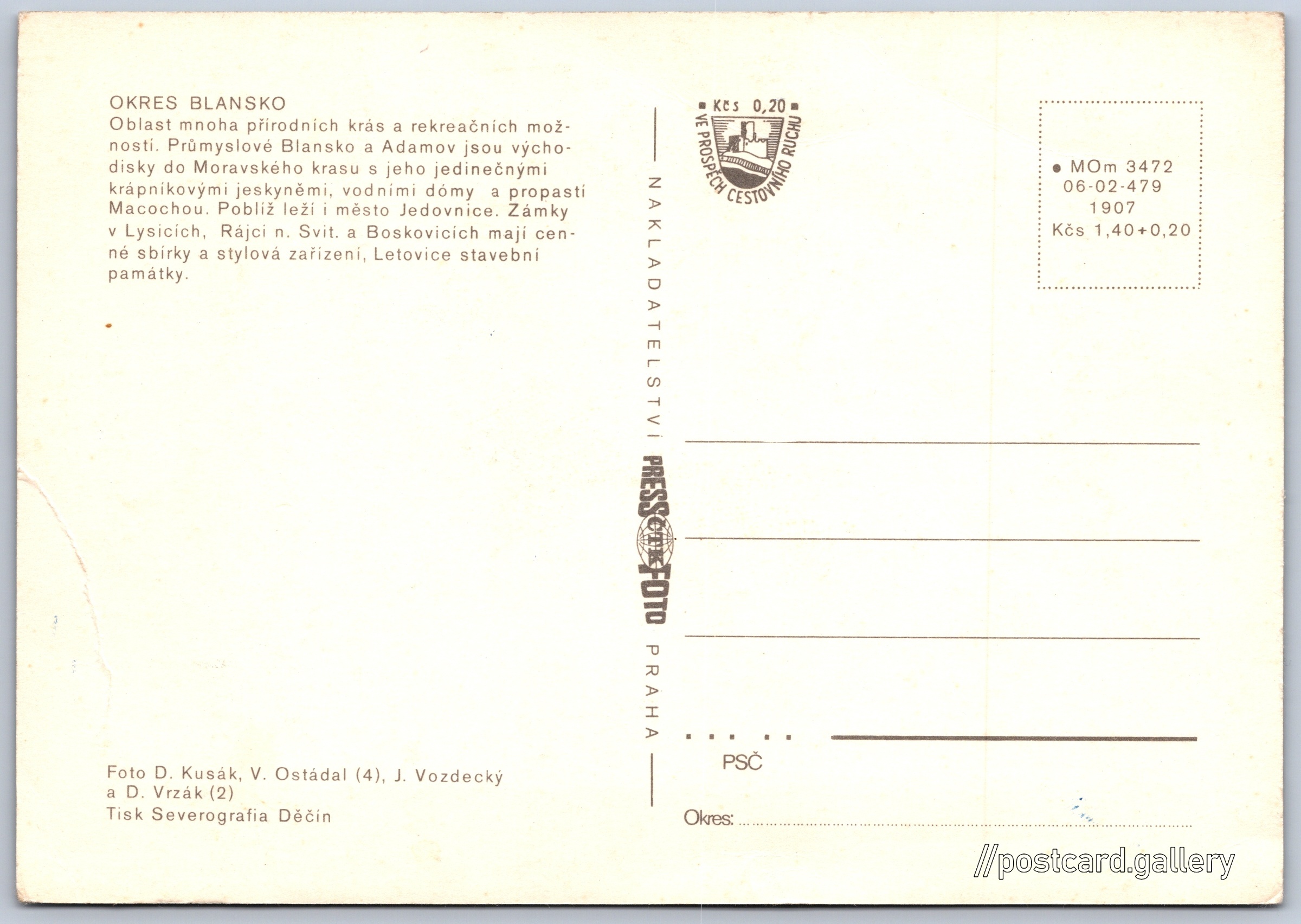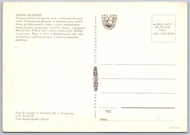 Cena pohlednice: 1,40 Kčs (CSK) (+0,20 Kčs přípl. na tur. ruch)