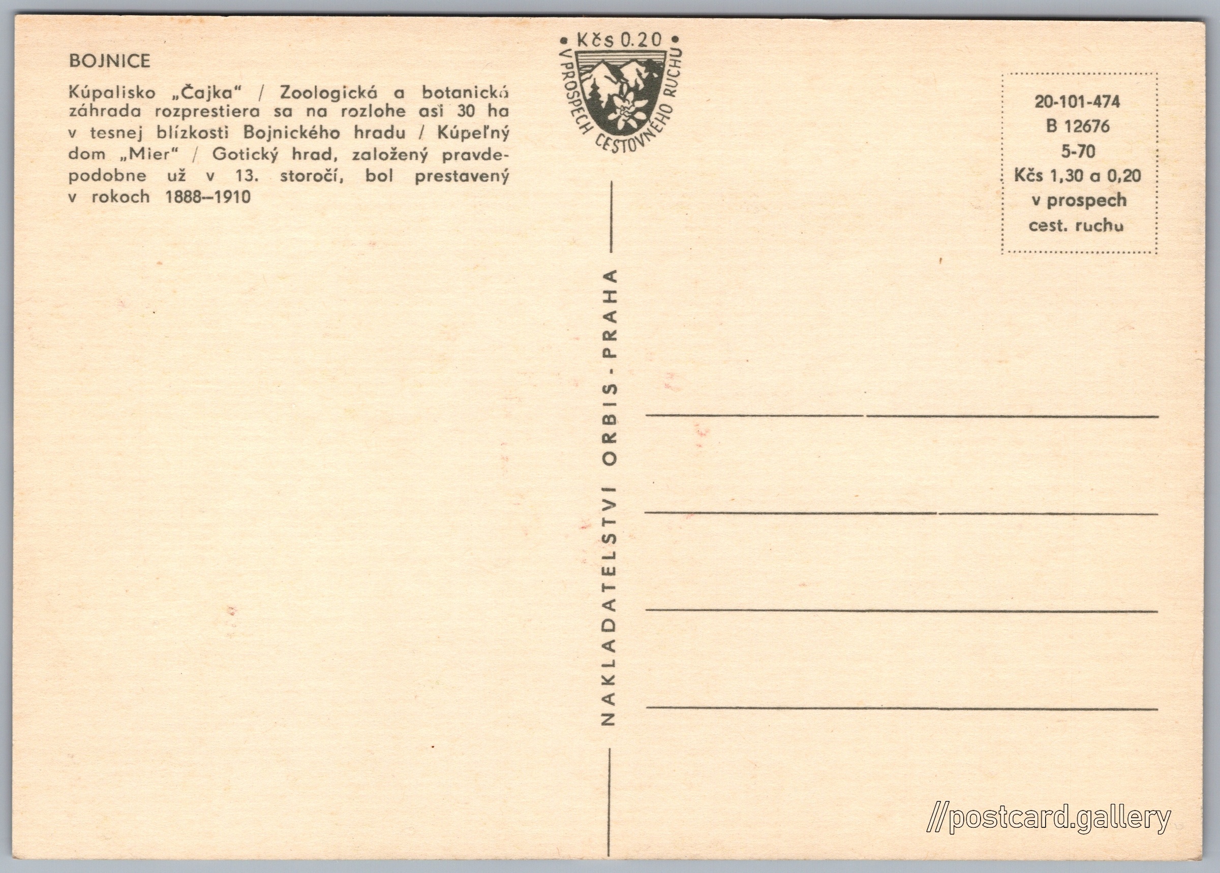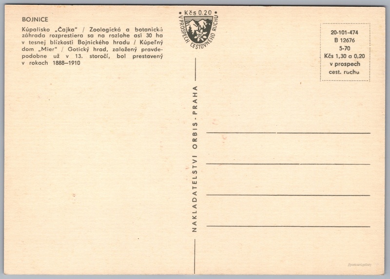 Cena pohlednice: 1,30 Kčs (CSK) (+0,20 Kčs přípl. na tur. ruch)