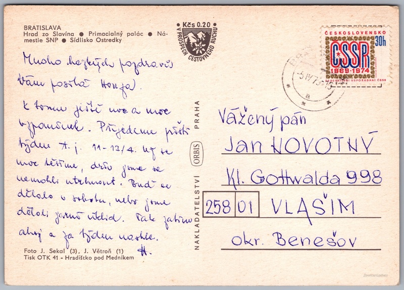 Bratislava Pokud chcete vidět pohlednice ve vyšším rozlišení nebo zobrazovat jejich zadní stranu, tak se prosím nejdříve přihlašte Přihlásit Zaregistrovat Bratislava BRATISLAVA- Hrad zo Slavína- Primacialný palác- Námestie SNP- Sídlisko Ostredky Jazyk tištěného textu na pohlednici: čeština Primaciální palác, Zámek, Primaciální náměstí 494/2, Bratislava - Staré Mesto, Slovensko ukázat na mapě V blízkém okolí místa zobrazeného na pohlednici lze najít 43 jiných pohlednic. Zobrazit blízké pohlednice Vydavatel: PressFoto Bratislava (Československo) Odhadované datum vydání pohlednice: 1973 - 1976 Pomozte nám zpřesnit rok vzniku pohlednice Velikost (š x v) a tvar pohlednice: 148 x 105 mm (5.83" x 4.13"), obdélník Osoby spjaté s touto pohlednicí: Josef Sekal(Autor fotografie) J. Větroň(Autor fotografie) Prošlá poštou:Datum na razítku: 5.4.1976 Ceny: Příplatek na tur. ruch: 0,20 Kčs (CSK))Vyplacené známky: 0,30 Kčs (CSK) DiskuseVložit příspěvek Přidat novou složku ... Spravovat složky ...