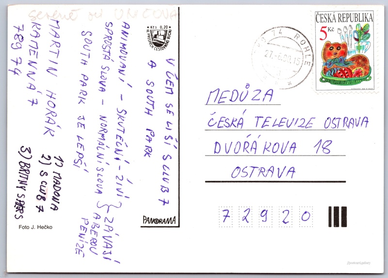 Brníčko, Kamenná, Libina, Rohle Pokud chcete vidět pohlednice ve vyšším rozlišení nebo zobrazovat jejich zadní stranu, tak se prosím nejdříve přihlašte Přihlásit Zaregistrovat Brníčko, Kamenná, Libina, Rohle Jazyk tištěného textu na pohlednici: čeština Brníčko, Obec, Česko ukázat na mapě Vydavatel: Panorama (Československo) Odhadované datum vydání pohlednice: 1997 - 2000 Pomozte nám zpřesnit rok vzniku pohlednice Velikost (š x v) a tvar pohlednice: 148 x 105 mm (5.83" x 4.13"), obdélník Osoby spjaté s touto pohlednicí: J. Hečko(Autor fotografie) Prošlá poštou:Datum na razítku: 27.6.2000 Ceny: Příplatek na tur. ruch: 0,20 Kčs (CSK))Vyplacené známky: 5,00 Kč (CZK) DiskuseVložit příspěvek Přidat novou složku ... Spravovat složky ...