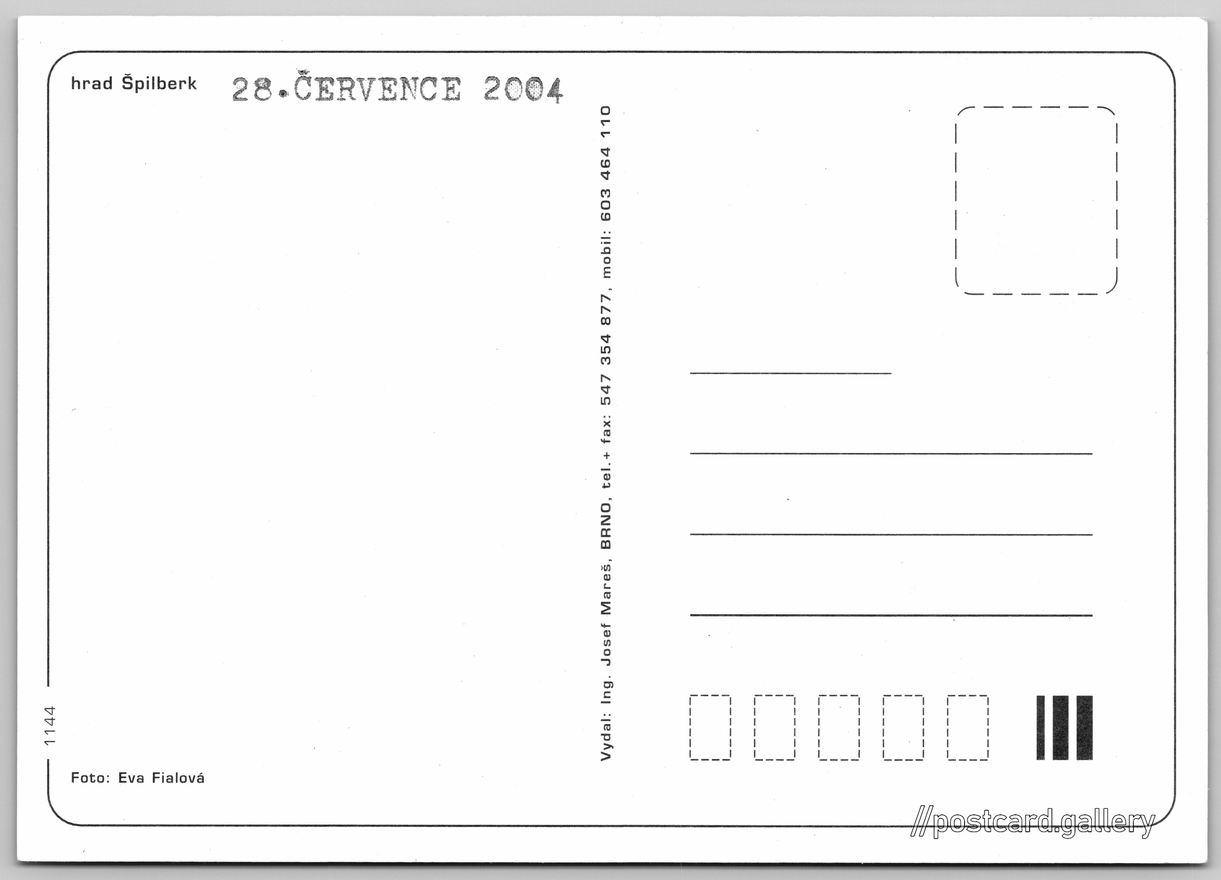 Brno, hrad Špilberk Pokud chcete vidět pohlednice ve vyšším rozlišení nebo zobrazovat jejich zadní stranu, tak se prosím nejdříve přihlašte Přihlásit Zaregistrovat Brno hrad Špilberk Jazyk tištěného textu na pohlednici: čeština Hrad Špilberk, Hrad, Brno-město, Česko ukázat na mapě V blízkém okolí místa zobrazeného na pohlednici lze najít 39 jiných pohlednic. Zobrazit blízké pohlednice Vydavatel: Ing. Josef Mareš (Česko) Odhadované datum vydání pohlednice: 2001 - 2004 Pomozte nám zpřesnit rok vzniku pohlednice Velikost (š x v) a tvar pohlednice: 147 x 104 mm (5.79" x 4.09"), obdélník Osoby spjaté s touto pohlednicí: Eva Fialová(Autor fotografie) Čistá pohlednice (neprošlá poštou) Kódy na pohlednici: 1144 DiskuseVložit příspěvek Přidat novou složku ... Spravovat složky ...