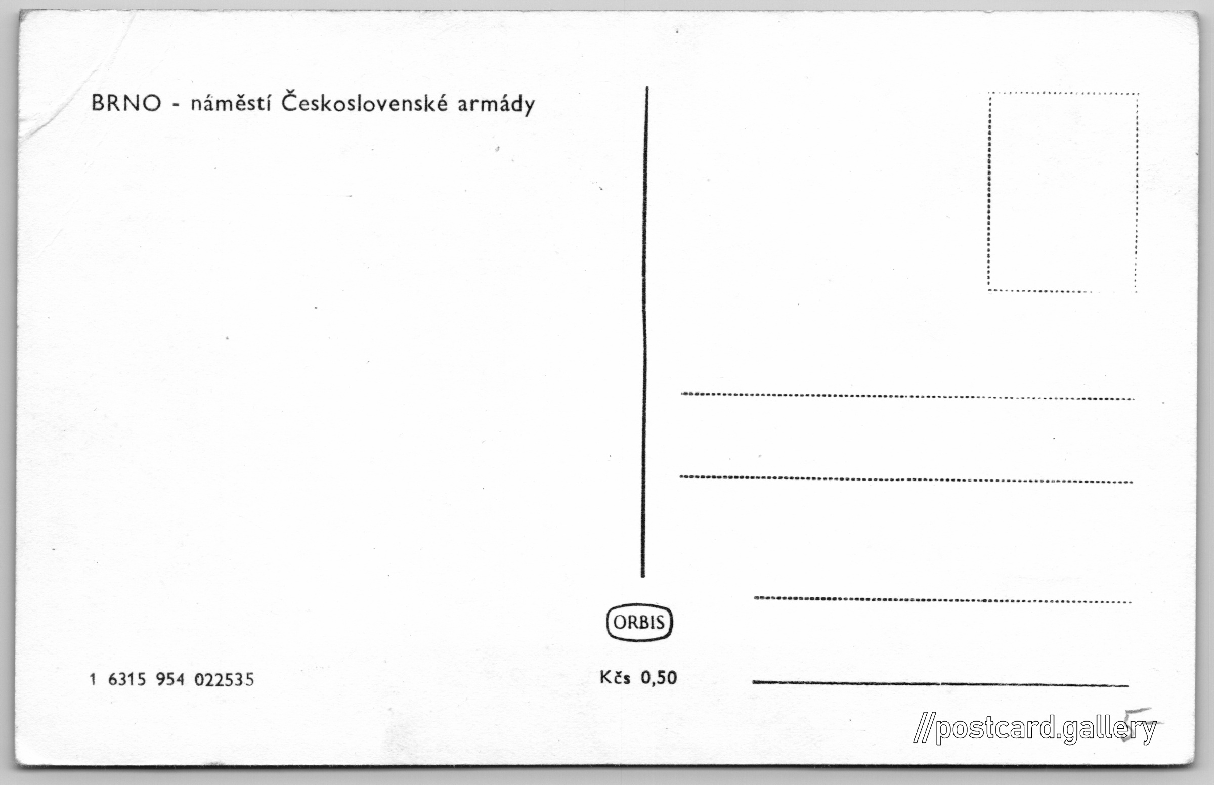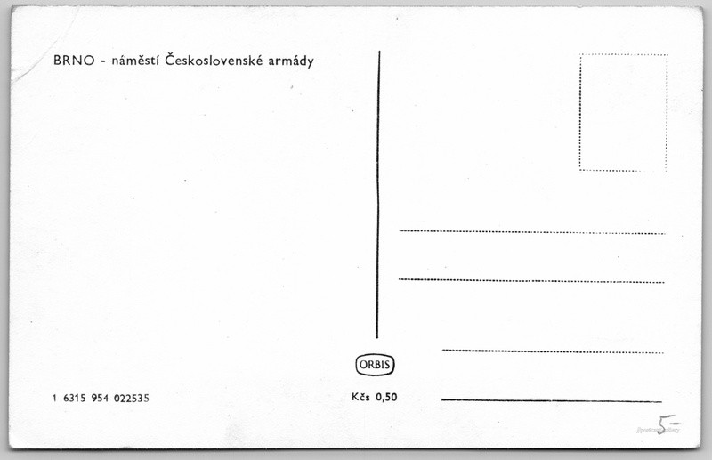 Brno, Náměstí Československé armády Pokud chcete vidět pohlednice ve vyšším rozlišení nebo zobrazovat jejich zadní stranu, tak se prosím nejdříve přihlašte Přihlásit Zaregistrovat BRNO - náměstí Československé armády Jazyk tištěného textu na pohlednici: čeština Nádražní, Brno, Brno-město ukázat na mapě V blízkém okolí místa zobrazeného na pohlednici lze najít 39 jiných pohlednic. Zobrazit blízké pohlednice Vydavatel: Nakladatelství Orbis (Československo) Rok vydání pohlednice: září, 1954 Velikost (š x v) a tvar pohlednice: 139 x 89 mm (5.47" x 3.50"), obdélník Čistá pohlednice (neprošlá poštou) Ceny: Cena pohlednice: 0,50 Kčs (CSK) Kódy na pohlednici: 1 6315 954 022535 DiskuseVložit příspěvek Přidat novou složku ... Spravovat složky ...