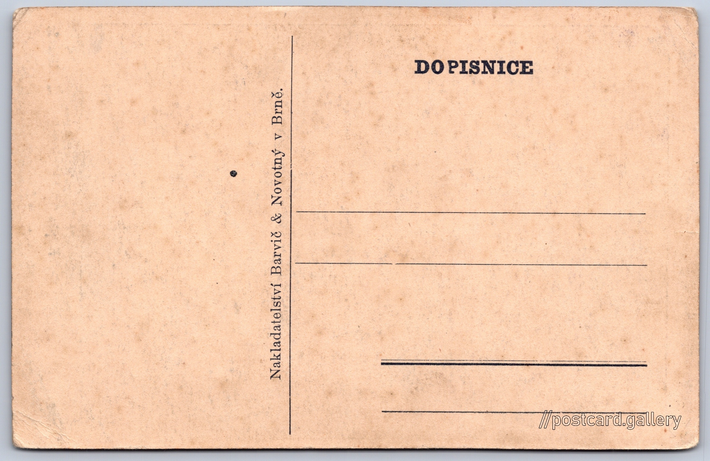 Brno, Špilberk, kaple Pokud chcete vidět pohlednice ve vyšším rozlišení nebo zobrazovat jejich zadní stranu, tak se prosím nejdříve přihlašte Přihlásit Zaregistrovat Brno Kaple Špilberk Nakladatelství Barvič & Novotný v Brně.DOPISNICE Jazyk tištěného textu na pohlednici: čeština Brno-střed, Brno, Brno-město ukázat na mapě V blízkém okolí místa zobrazeného na pohlednici lze najít 39 jiných pohlednic. Zobrazit blízké pohlednice Vydavatel: Barvič & Novotný (Československo) Datum vydání není známo Pomozte nám odhadnout datum vzniku pohlednice Velikost (š x v) a tvar pohlednice: 139 x 90 mm (5.47" x 3.54"), obdélník Čistá pohlednice (neprošlá poštou) DiskuseVložit příspěvek Přidat novou složku ... Spravovat složky ...