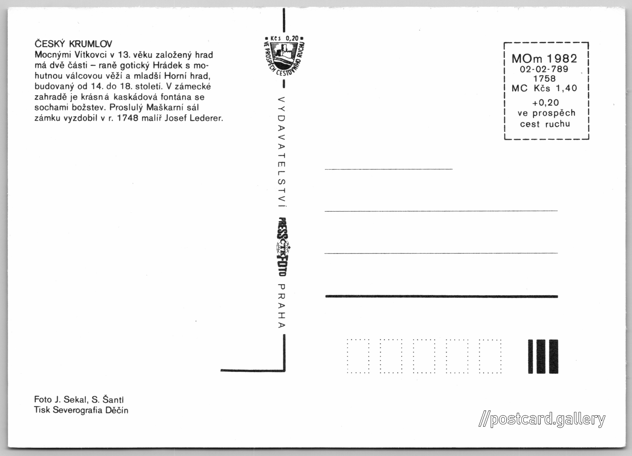 Cena pohlednice: 1,40 Kčs (CSK) (+0,20 Kčs přípl. na tur. ruch)