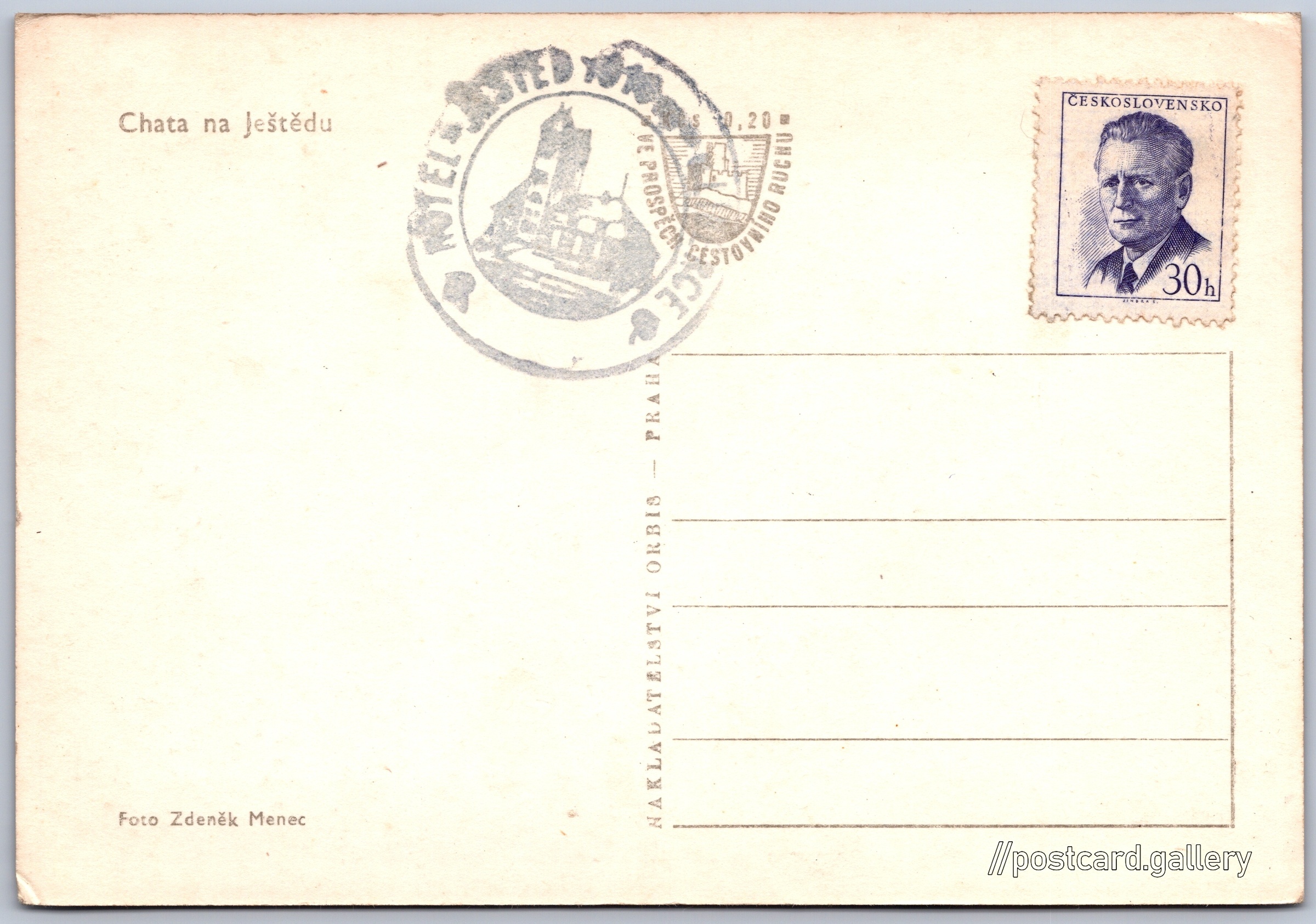 Chata na Ještědu Pokud chcete vidět pohlednice ve vyšším rozlišení nebo zobrazovat jejich zadní stranu, tak se prosím nejdříve přihlašte Přihlásit Zaregistrovat Chata na Ještědu Jazyk tištěného textu na pohlednici: čeština Liberec XIX-Horní Hanychov 153, Liberec, 460 08, Liberec ukázat na mapě V blízkém okolí místa zobrazeného na pohlednici lze najít 15 jiných pohlednic. Zobrazit blízké pohlednice Vydavatel: Nakladatelství Orbis (Československo) Datum vydání není známo Pomozte nám odhadnout datum vzniku pohlednice Velikost (š x v) a tvar pohlednice: 147 x 101 mm (5.79" x 3.98"), obdélník Osoby spjaté s touto pohlednicí: Zdeněk Menec(Autor fotografie) Čistá pohlednice (neprošlá poštou) Ceny: Příplatek na tur. ruch: 0,20 Kčs (CSK))Vyplacené známky: 0,30 Kčs (CSK) DiskuseVložit příspěvek Přidat novou složku ... Spravovat složky ...