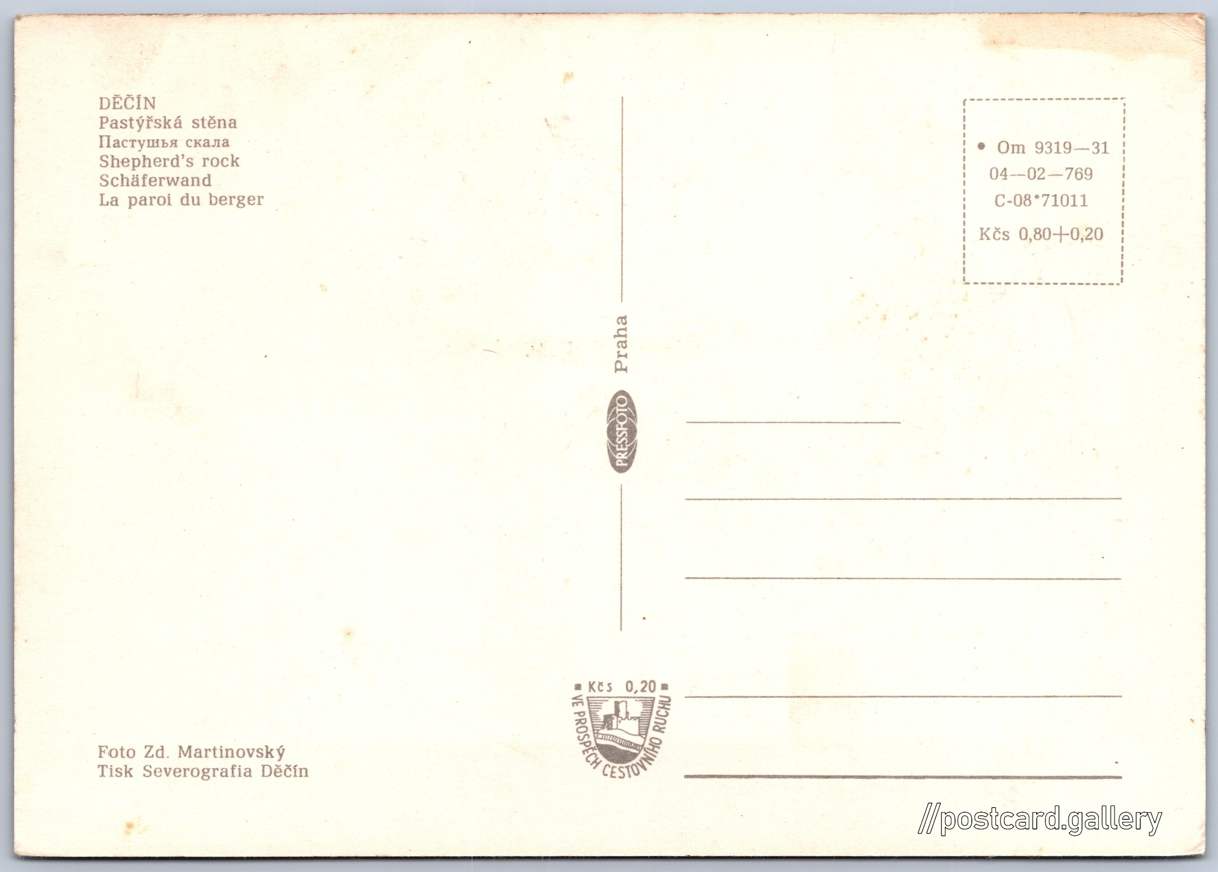 Cena pohlednice: 0,80 Kčs (CSK) (+0,20 Kčs přípl. na tur. ruch)