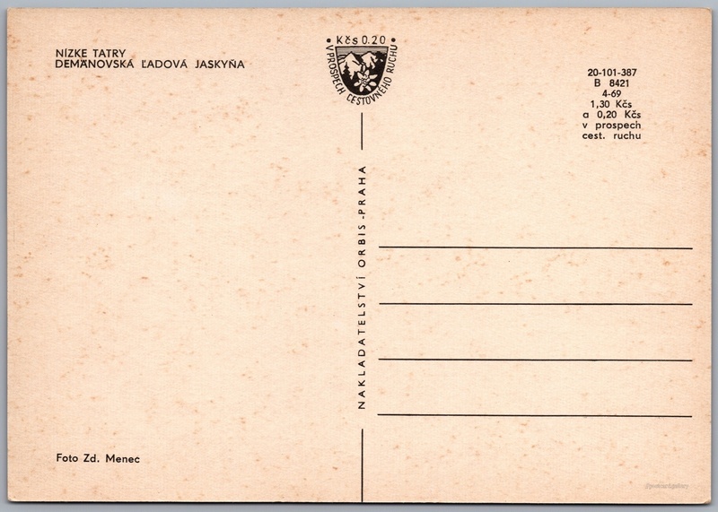 Demänovská ľadová jaskyňa Pokud chcete vidět pohlednice ve vyšším rozlišení nebo zobrazovat jejich zadní stranu, tak se prosím nejdříve přihlašte Přihlásit Zaregistrovat Demänovská ľadová jaskyňa Nízke TatryDemänovská ľadová jaskyňa Jazyk tištěného textu na pohlednici: slovenština Demänovská ledová jeskyně, Jeskyně, Demänovská Dolina, Slovensko ukázat na mapě V blízkém okolí místa zobrazeného na pohlednici lze najít 12 jiných pohlednic. Zobrazit blízké pohlednice Vydavatel: Nakladatelství Orbis (Československo) Datum vydání není známo Pomozte nám odhadnout datum vzniku pohlednice Velikost (š x v) a tvar pohlednice: 150 x 105 mm (5.91" x 4.13"), obdélník Osoby spjaté s touto pohlednicí: Zdeněk Menec(Autor fotografie) Čistá pohlednice (neprošlá poštou) Ceny: Cena pohlednice: 1,30 Kčs (CSK) (+0,20 Kčs přípl. na tur. ruch) Kódy na pohlednici: 20-101-387 B 8421 4-69 DiskuseVložit příspěvek Přidat novou složku ... Spravovat složky ...