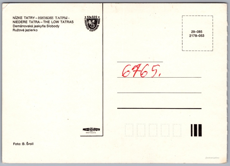 Demenovská jeskyně svobody 3/29 Pokud chcete vidět pohlednice ve vyšším rozlišení nebo zobrazovat jejich zadní stranu, tak se prosím nejdříve přihlašte Přihlásit Zaregistrovat NİZKE TATRY - НИЗКИЕ ТАТРЫ - NIEDERE TATRA - THE LOW TATRASDemänovská jaskyňa SlobodyRužové jazierko Jazyk tištěného textu na pohlednici: slovenština Demänovská jeskyně svobody, Jeskyně, Demänovská Dolina 27, Demänovská Dolina, Slovensko ukázat na mapě V blízkém okolí místa zobrazeného na pohlednici lze najít 29 jiných pohlednic. Zobrazit blízké pohlednice Vydavatel: PressFoto Bratislava (Československo) Rok vydání pohlednice: 1978 Velikost (š x v) a tvar pohlednice: 148 x 105 mm (5.83" x 4.13"), obdélník Osoby spjaté s touto pohlednicí: B. Šroll(Autor fotografie) Čistá pohlednice (neprošlá poštou) Ceny: Příplatek na tur. ruch: 0,20 Kčs (CSK)) Kódy na pohlednici: 29-085 2178-053 DiskuseVložit příspěvek Přidat novou složku ... Spravovat složky ...