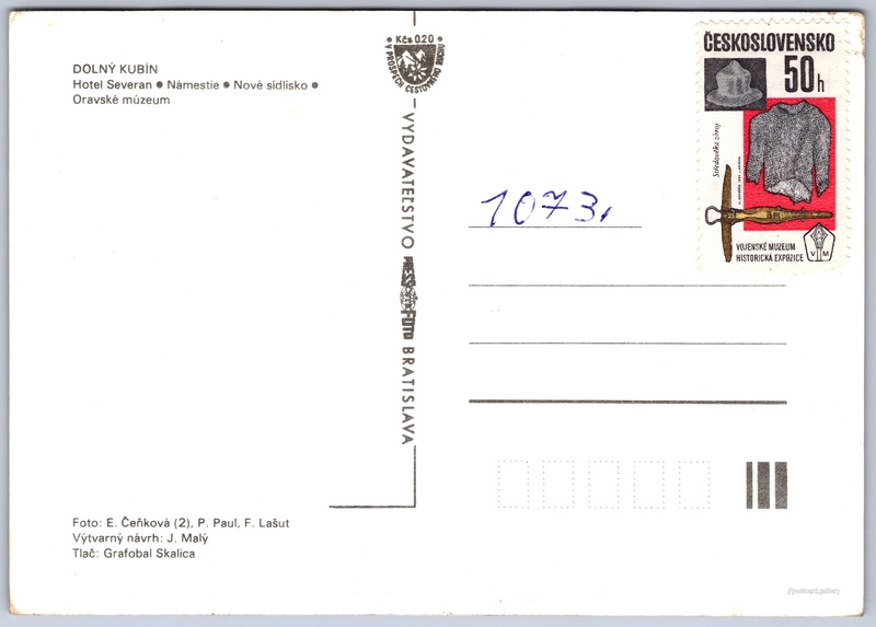 Dolný Kubín Pokud chcete vidět pohlednice ve vyšším rozlišení nebo zobrazovat jejich zadní stranu, tak se prosím nejdříve přihlašte Přihlásit Zaregistrovat Dolný Kubín DOLNÝ KUBÍN- Hotel Severan- Námestie- Nové sídlisko- Oravské múzeum Jazyk tištěného textu na pohlednici: slovenština Radlinského 1729/45 ukázat na mapě Vydavatel: PressFoto Bratislava (Československo) Datum vydání není známo Pomozte nám odhadnout datum vzniku pohlednice Velikost (š x v) a tvar pohlednice: 148 x 105 mm (5.83" x 4.13"), obdélník Osoby spjaté s touto pohlednicí: Petr Paul(Autor fotografie) J. Malý(Design pohlednice) Emilia Čeňková(Autor fotografie) F. Lašut(Autor fotografie) Čistá pohlednice (neprošlá poštou) Ceny: Příplatek na tur. ruch: 0,20 Kčs (CSK))Vyplacené známky: 0,50 Kčs (CSK) DiskuseVložit příspěvek Přidat novou složku ... Spravovat složky ...
