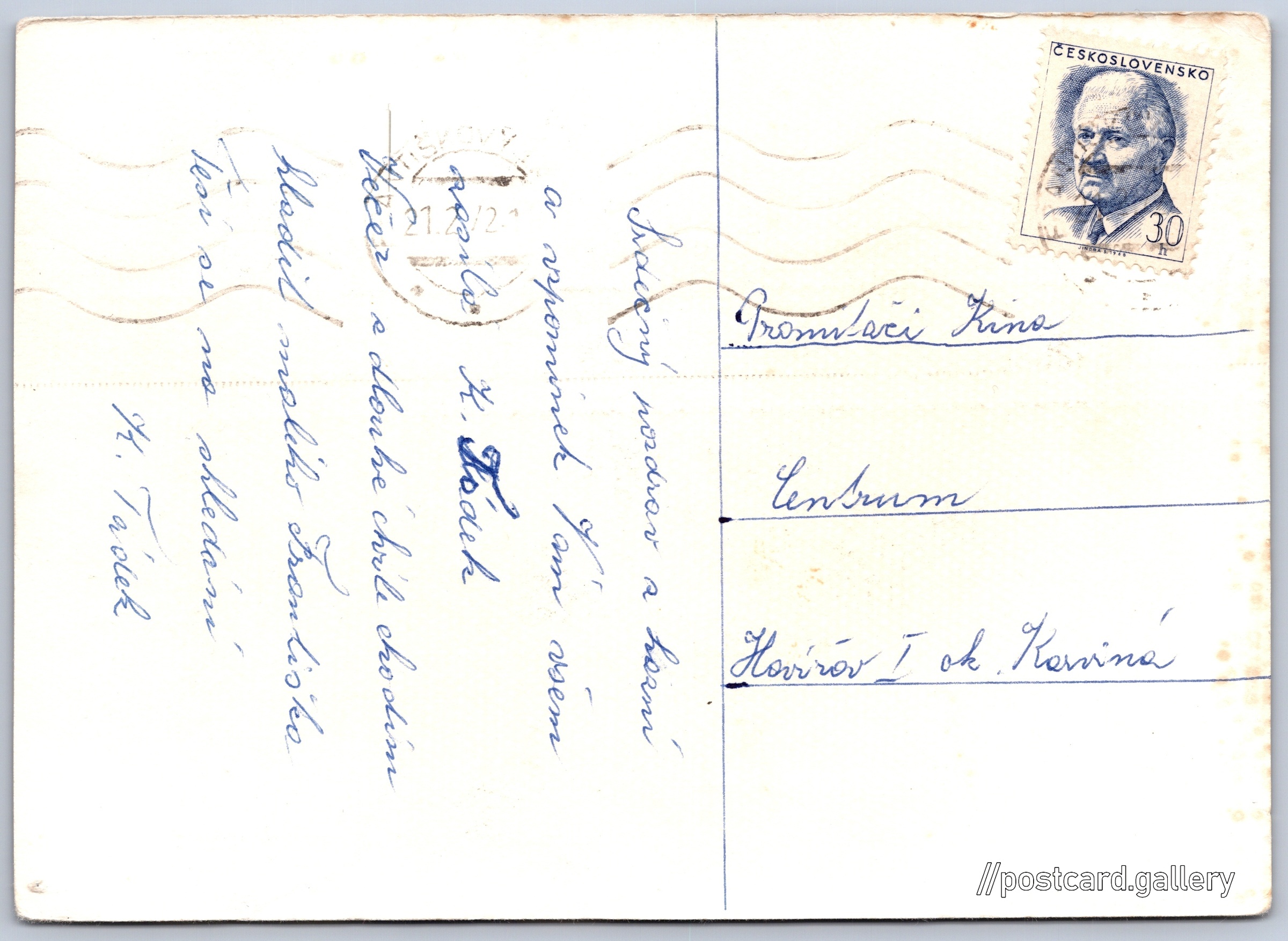 Jazyk tištěného textu na pohlednici: