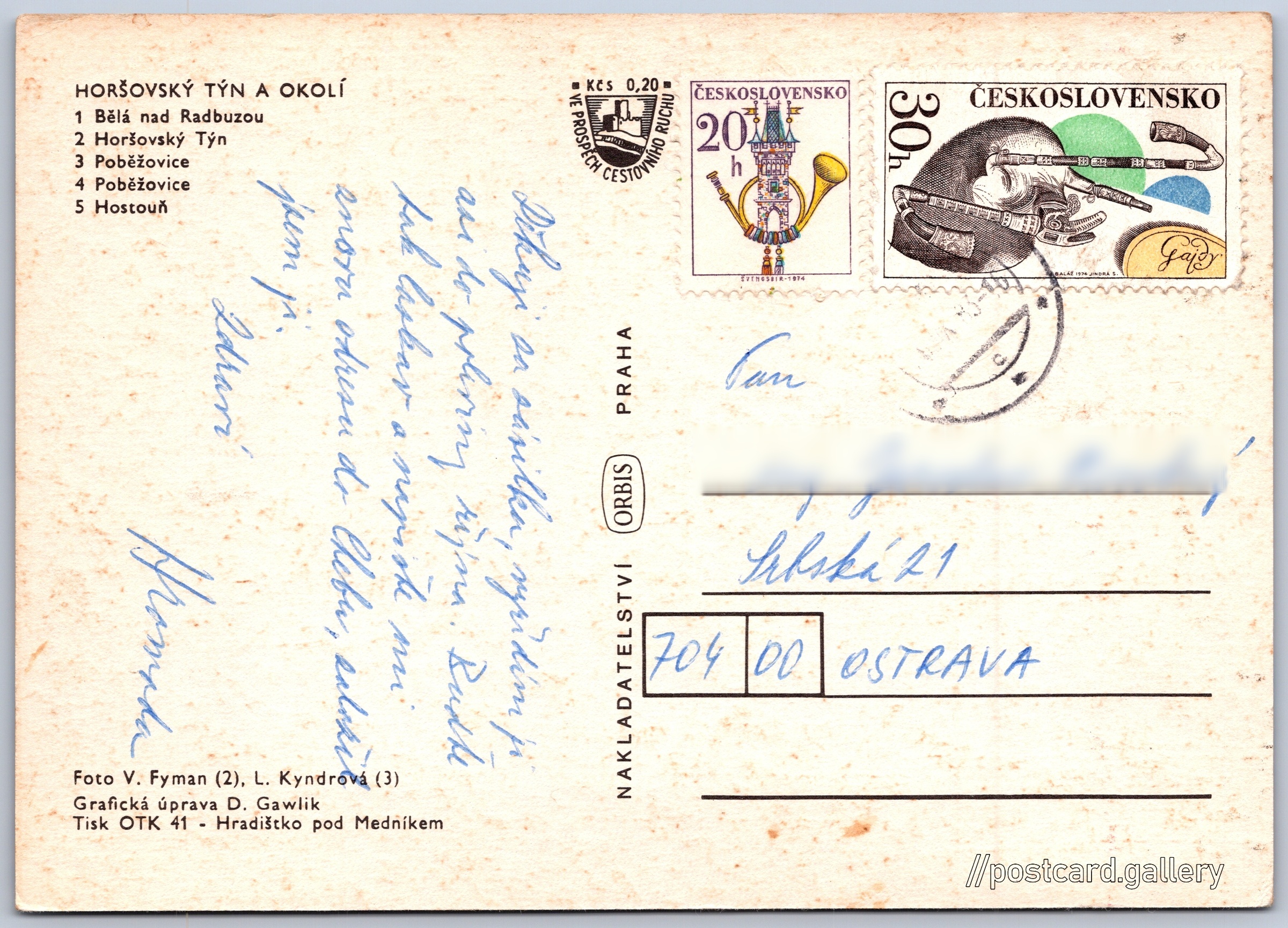 Horšovský Týn a okolí Pokud chcete vidět pohlednice ve vyšším rozlišení nebo zobrazovat jejich zadní stranu, tak se prosím nejdříve přihlašte Přihlásit Zaregistrovat Horšovský Týn a okolí HORŠOVSKÝ TÝN A OKOLÍ1 Bělá nad Radbuzou2 Horšovský Týn3 Poběžovice4 Poběžovice5 Hostouň Jazyk tištěného textu na pohlednici: čeština Bělá nad Radbuzou, Domažlice ukázat na mapě Vydavatel: Nakladatelství Orbis (Československo) Datum vydání není známo Pomozte nám odhadnout datum vzniku pohlednice Velikost (š x v) a tvar pohlednice: 148 x 105 mm (5.83" x 4.13"), obdélník Osoby spjaté s touto pohlednicí: Vladimír Fyman(Autor fotografie) L. Kyndrová(Autor fotografie) D. Gawlik(Design pohlednice) Prošlá poštou Ceny: Příplatek na tur. ruch: 0,20 Kčs (CSK))Vyplacené známky: 0,50 Kčs (CSK) DiskuseVložit příspěvek Přidat novou složku ... Spravovat složky ...