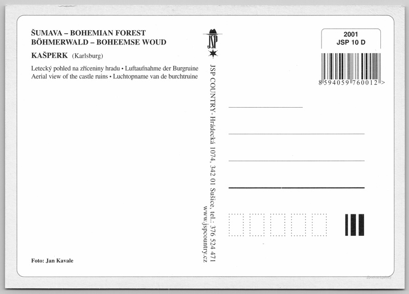 Jazyky tištěného textu na pohlednici: