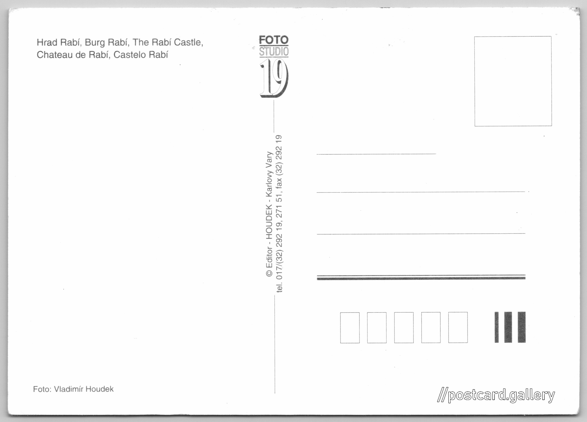 Hrad Rabí Pokud chcete vidět pohlednice ve vyšším rozlišení nebo zobrazovat jejich zadní stranu, tak se prosím nejdříve přihlašte Přihlásit Zaregistrovat Rabí Hrad Rabí, Burg Rabí, The Rabí Castle, Chateau de Rabí, Castelo Rabí Jazyky tištěného textu na pohlednici: čeština, němčina, angličtina, francouzština, italština, italština Zřícenina hradu Rabí, Zřícenina, Rabí, Česko ukázat na mapě V blízkém okolí místa zobrazeného na pohlednici lze najít 6 jiných pohlednic. Zobrazit blízké pohlednice Vydavatel: Foto Studio 19 (Česko) Datum vydání není známo Pomozte nám odhadnout datum vzniku pohlednice Velikost (š x v) a tvar pohlednice: 147 x 105 mm (5.79" x 4.13"), obdélník Osoby spjaté s touto pohlednicí: Vladimír Houdek(Autor fotografie) Čistá pohlednice (neprošlá poštou) DiskuseVložit příspěvek Přidat novou složku ... Spravovat složky ...