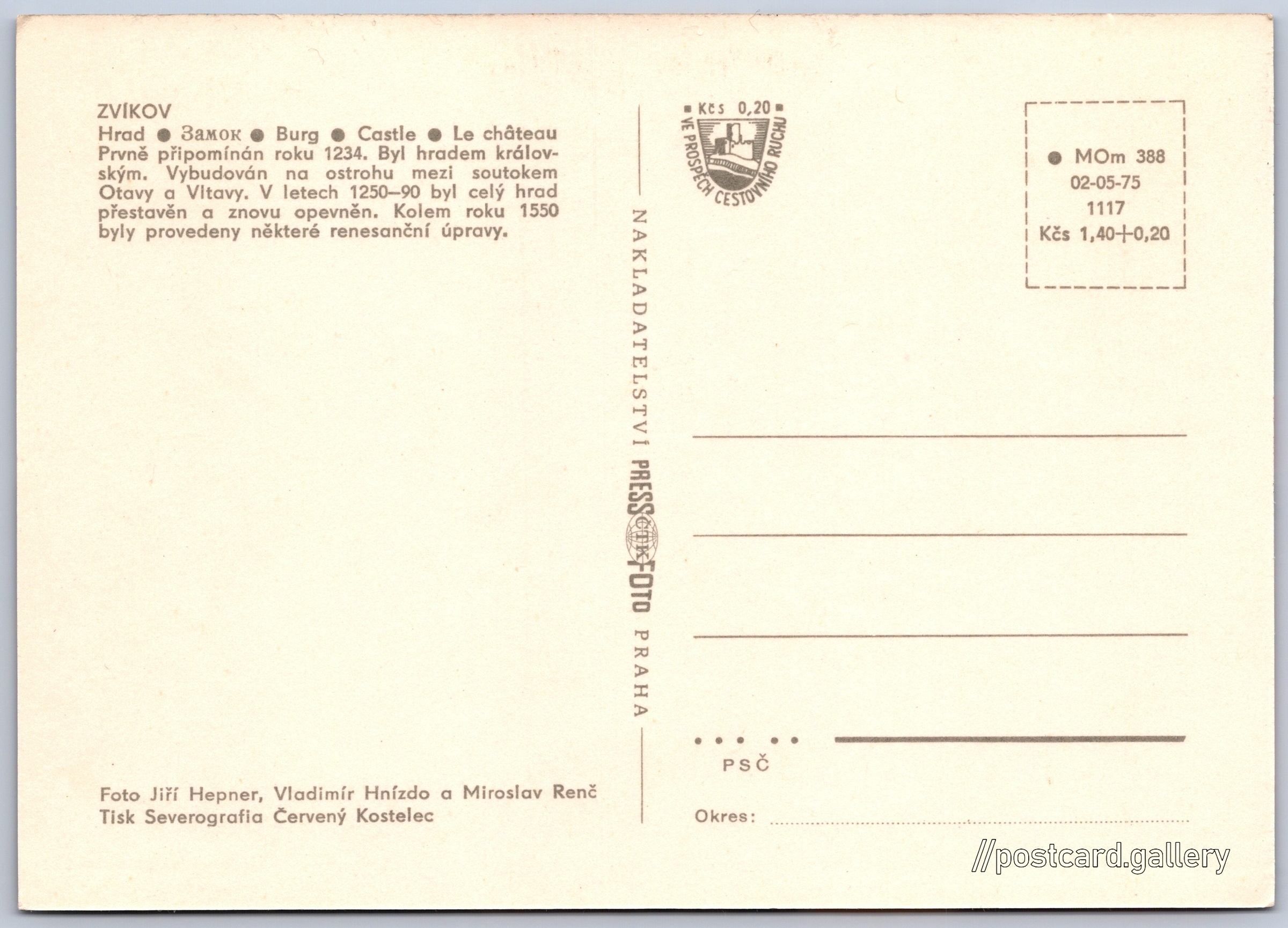 Jazyky tištěného textu na pohlednici: