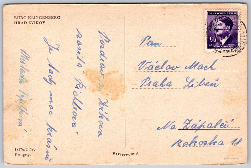Hrad Zvíkov 7/15 Pokud chcete vidět pohlednice ve vyšším rozlišení nebo zobrazovat jejich zadní stranu, tak se prosím nejdříve přihlašte Přihlásit Zaregistrovat BURG KLINGENBERGHRAD ZVÍKOV Jazyky tištěného textu na pohlednici: němčina, čeština Zvíkovské Podhradí 1, 397 01 Zvíkovské Podhradí, Czechia ukázat na mapě V blízkém okolí místa zobrazeného na pohlednici lze najít 15 jiných pohlednic. Zobrazit blízké pohlednice Vydavatel: Fototypia - Vyškov (Československo) Odhadované datum vydání pohlednice: 1940 - 1943 Pomozte nám zpřesnit rok vzniku pohlednice Velikost (š x v) a tvar pohlednice: 141 x 94 mm (5.55" x 3.70"), obdélník Prošlá poštou Ceny: Vyplacené známky: 0,60 Kčs (CSK) Kódy na pohlednici: 18176/T 580 DiskuseVložit příspěvek Přidat novou složku ... Spravovat složky ...