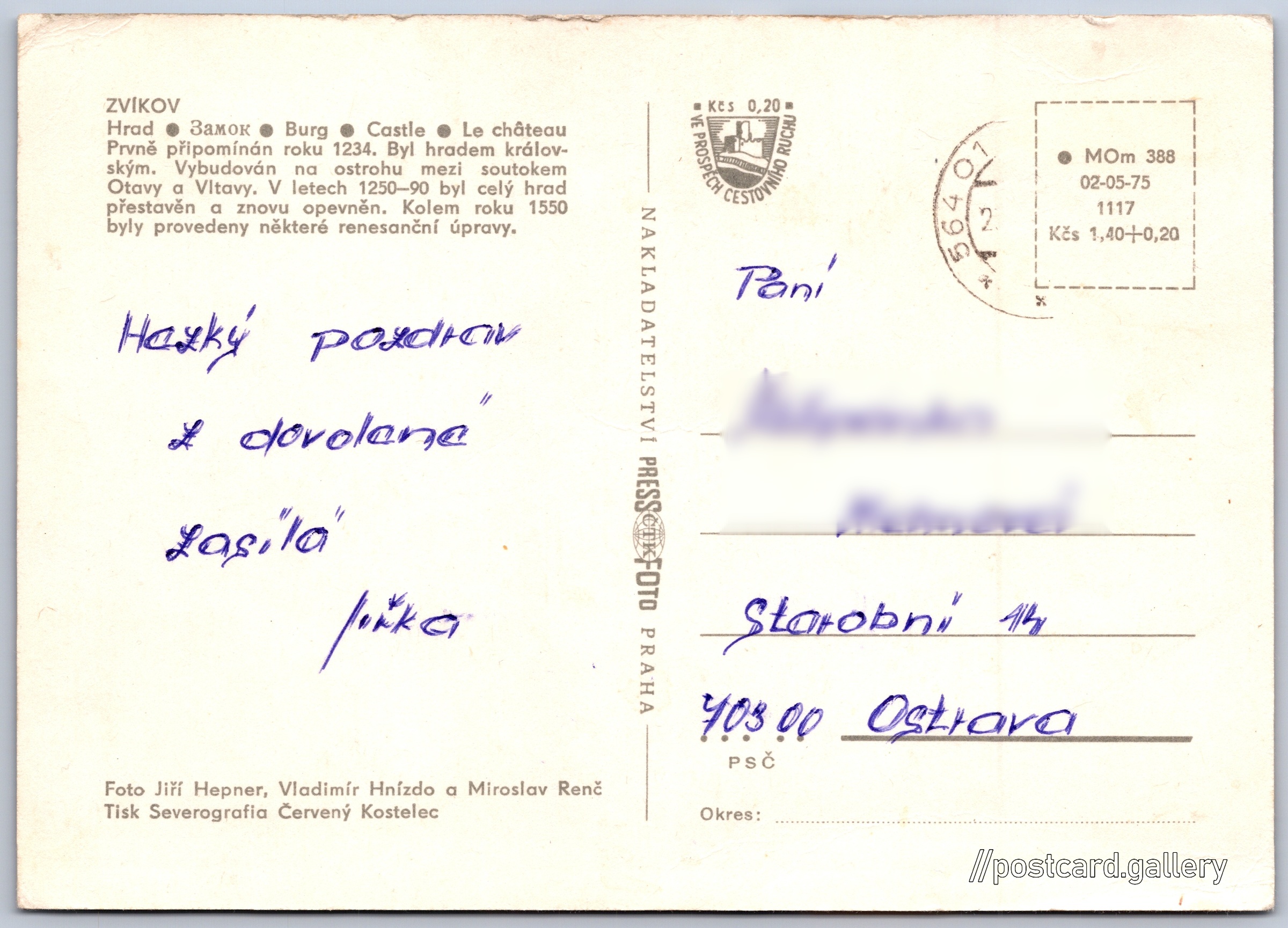 Jazyky tištěného textu na pohlednici: