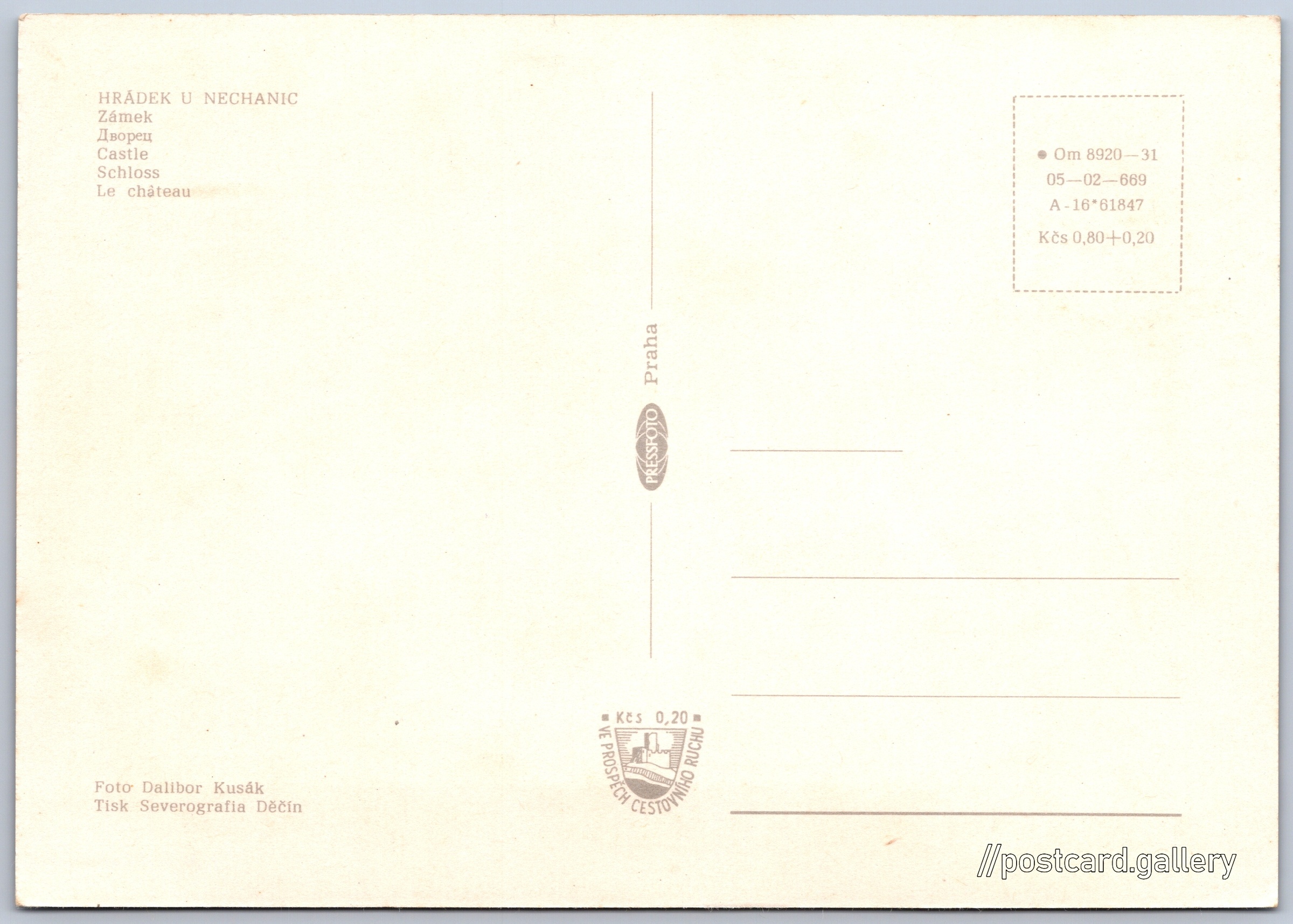 Hrádek u Nechanic, zámek Pokud chcete vidět pohlednice ve vyšším rozlišení nebo zobrazovat jejich zadní stranu, tak se prosím nejdříve přihlašte Přihlásit Zaregistrovat HRÁDEK U NECHANIC- Zámek- Дворец- Castle- Schloss- Le château Jazyky tištěného textu na pohlednici: čeština, ruština, angličtina, němčina, francouzština, francouzština Lubno 66, Nechanice, 503 15, Hradec Králové ukázat na mapě V blízkém okolí místa zobrazeného na pohlednici lze najít 1 jinou pohlednici. Zobrazit blízké pohlednice Vydavatel: PressFoto Praha (Československo) Rok vydání pohlednice: 1966 Velikost (š x v) a tvar pohlednice: 148 x 104 mm (5.83" x 4.09"), obdélník Osoby spjaté s touto pohlednicí: Dalibor Kusák(Autor fotografie) Čistá pohlednice (neprošlá poštou) Ceny: Cena pohlednice: 0,80 Kčs (CSK) (+0,20 Kčs přípl. na tur. ruch) Kódy na pohlednici: Om 8920-31 05-02-669 A-16*61847 DiskuseVložit příspěvek Přidat novou složku ... Spravovat složky ...