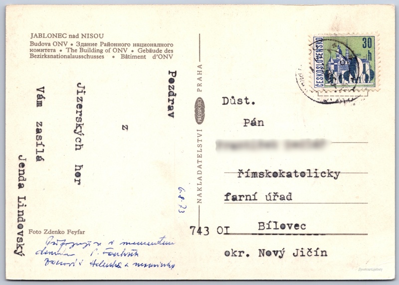 Jazyky tištěného textu na pohlednici: