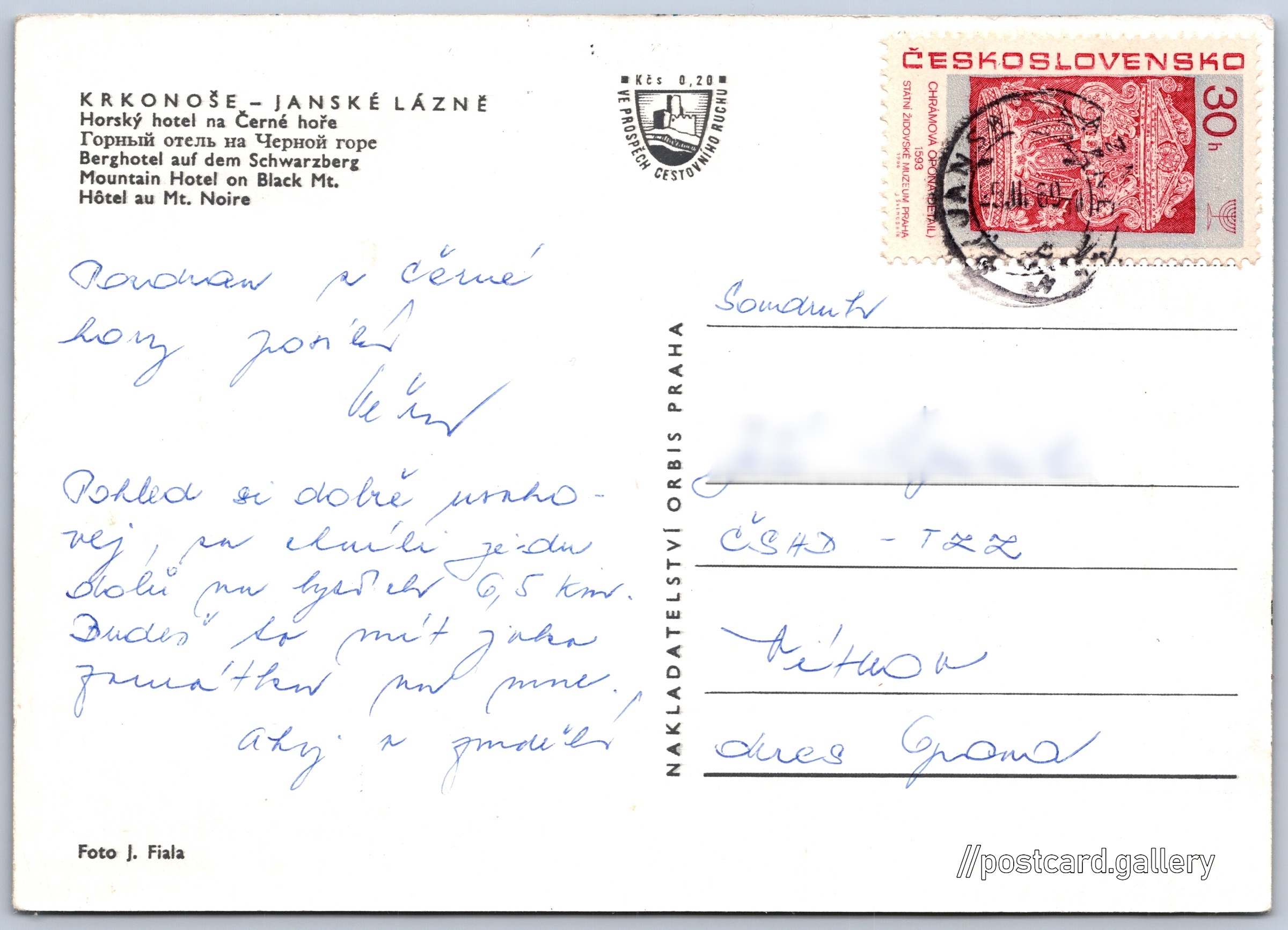 Jazyky tištěného textu na pohlednici: