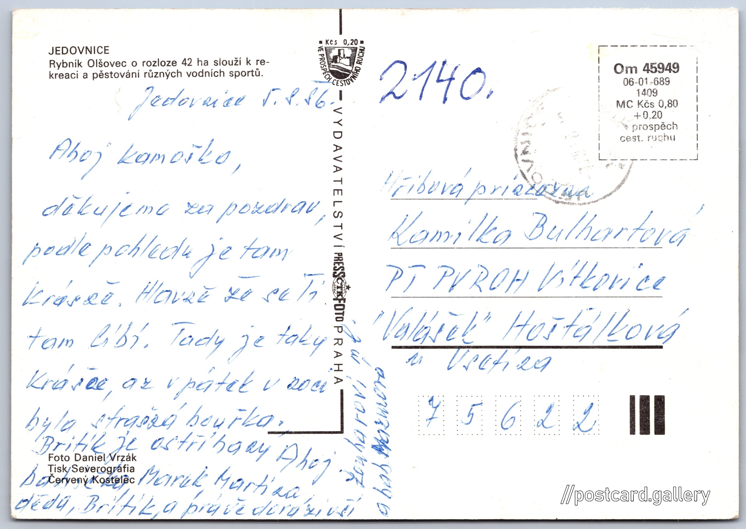 Datum napsání pohledu: 5.8.1986
