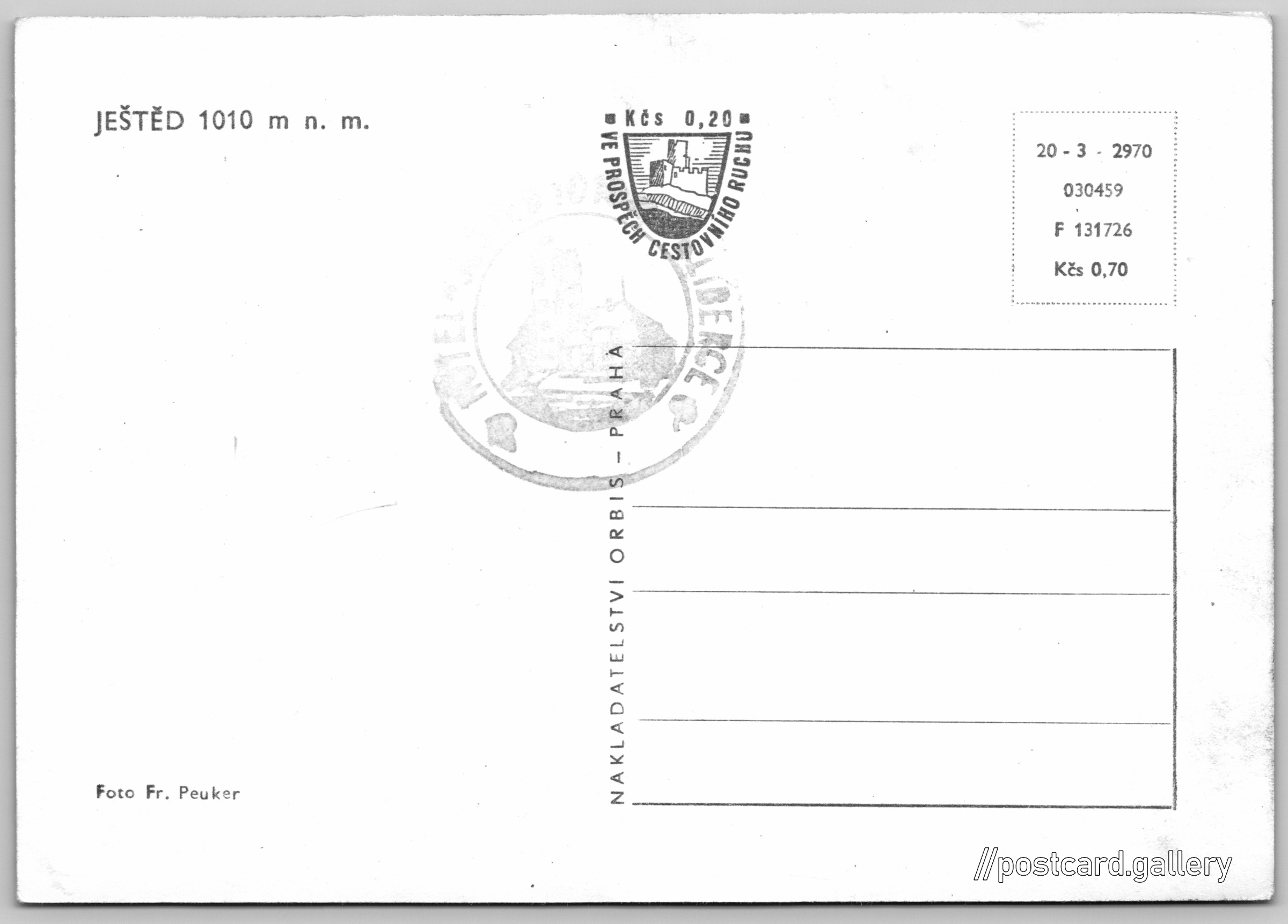 Cena pohlednice: 0,70 Kčs (CSK) (+0,20 Kčs přípl. na tur. ruch)