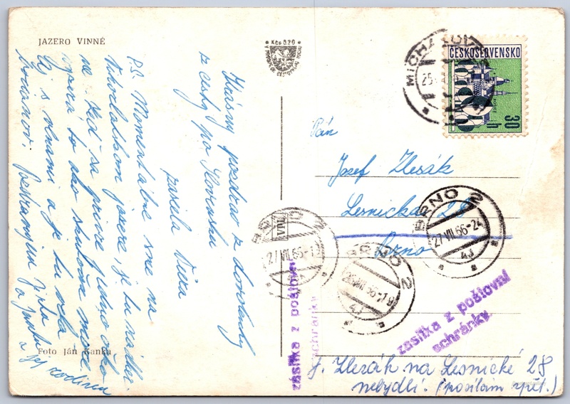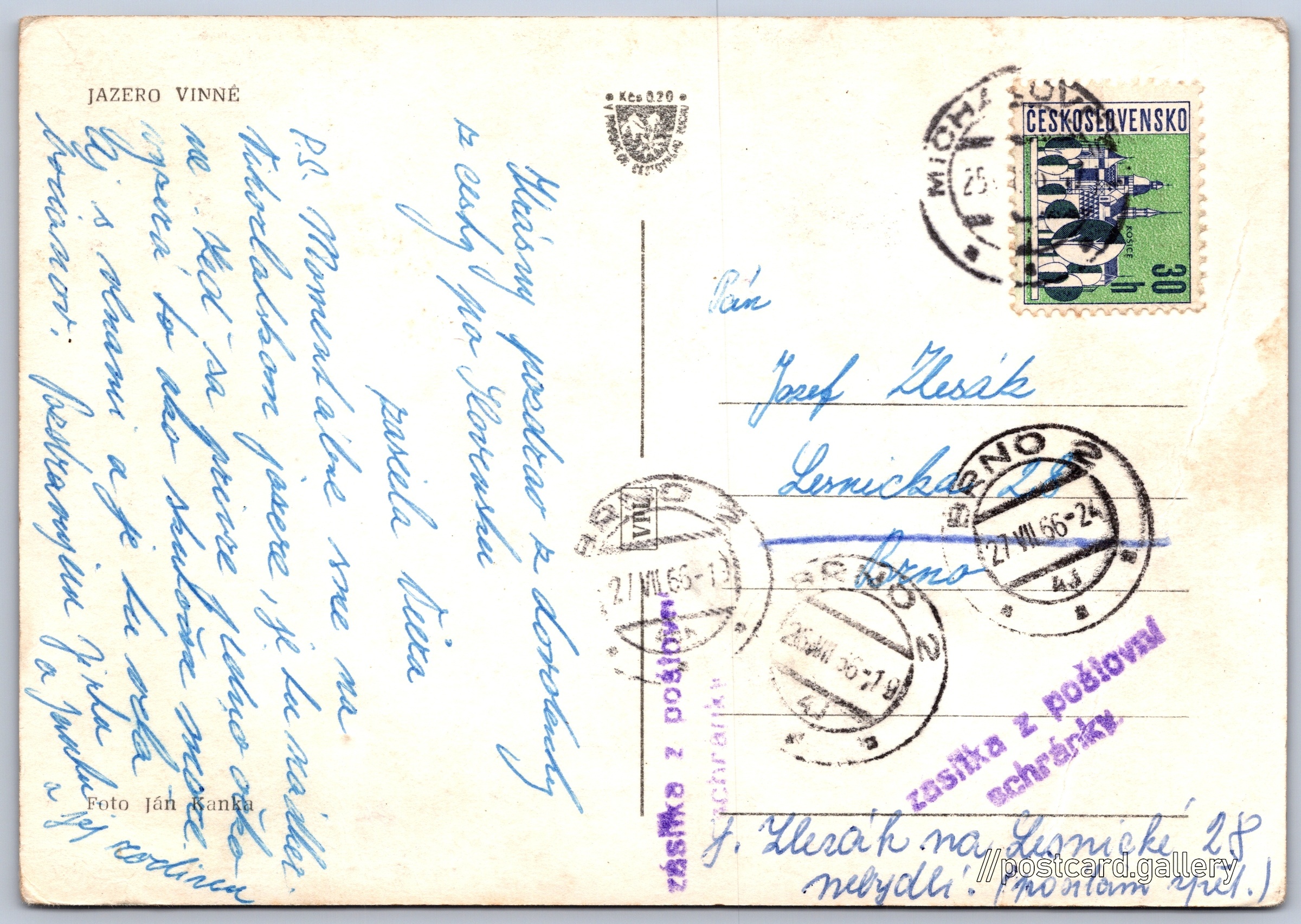 Jezero Vinné 9/11 Pokud chcete vidět pohlednice ve vyšším rozlišení nebo zobrazovat jejich zadní stranu, tak se prosím nejdříve přihlašte Přihlásit Zaregistrovat JAZERO VINNÉ Jazyk tištěného textu na pohlednici: slovenština Vinné ukázat na mapě V blízkém okolí místa zobrazeného na pohlednici lze najít 9 jiných pohlednic. Zobrazit blízké pohlednice Vydavatel: VPL (Československo) Odhadované datum vydání pohlednice: 1963 - 1966 Pomozte nám zpřesnit rok vzniku pohlednice Velikost (š x v) a tvar pohlednice: 146 x 102 mm (5.75" x 4.02"), obdélník Osoby spjaté s touto pohlednicí: Ján Kanka(Autor fotografie) Prošlá poštou:Datum na razítku: 25.7.1966 Ceny: Příplatek na tur. ruch: 0,20 Kčs (CSK))Vyplacené známky: 0,30 Kčs (CSK) DiskuseVložit příspěvek Přidat novou složku ... Spravovat složky ...