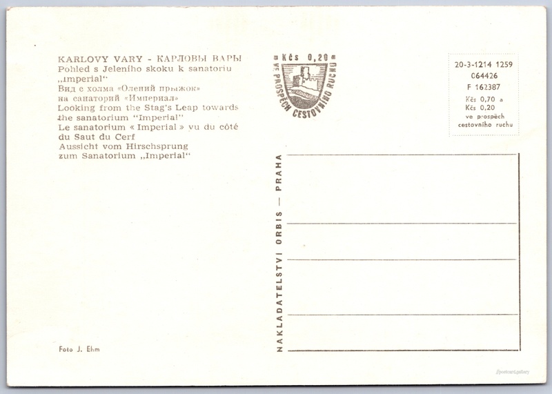 Cena pohlednice: 0,70 Kčs (CSK) (+0,20 Kčs přípl. na tur. ruch)