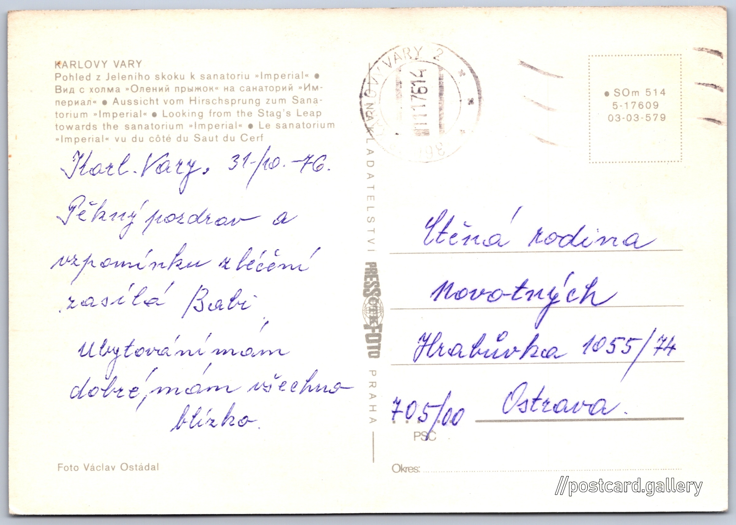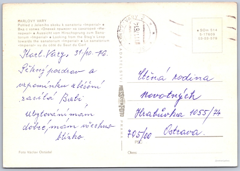 Jazyky tištěného textu na pohlednici: