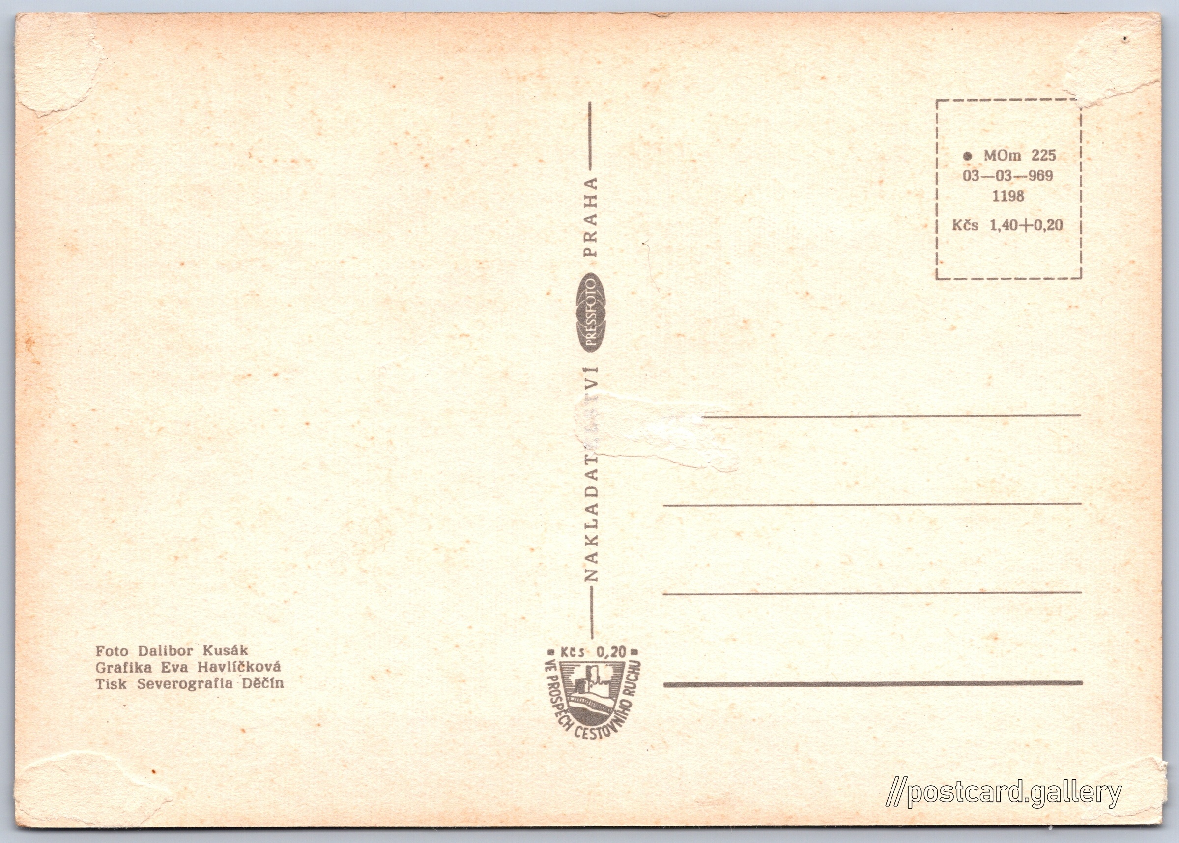 Cena pohlednice: 1,40 Kčs (CSK) (+0,20 Kčs přípl. na tur. ruch)