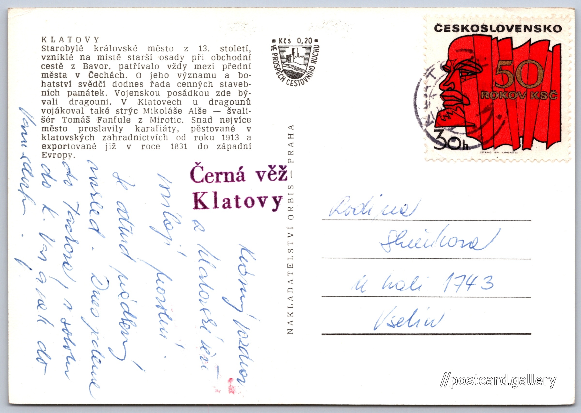 Starobylé královské město z 13. století, vzniklé na místě starší osady při obchodní cestě z Bavor, patřívalo vždy mezi přední města v Čechách. O jeho významu a bohatství svědčí dodnes řada cenných stavebních památek. Vojenskou posádkou zde bývali dragouni. V Klatovech u dragounů vojákoval také strýc Mikoláše Alše švališér Tomáš Fanfule z Mirotic. Snad nejvíce město proslavily karafiáty, pěstované v klatovských zahradnictvích od roku 1913 a exportované již v roce 1831 do západní Evropy.
