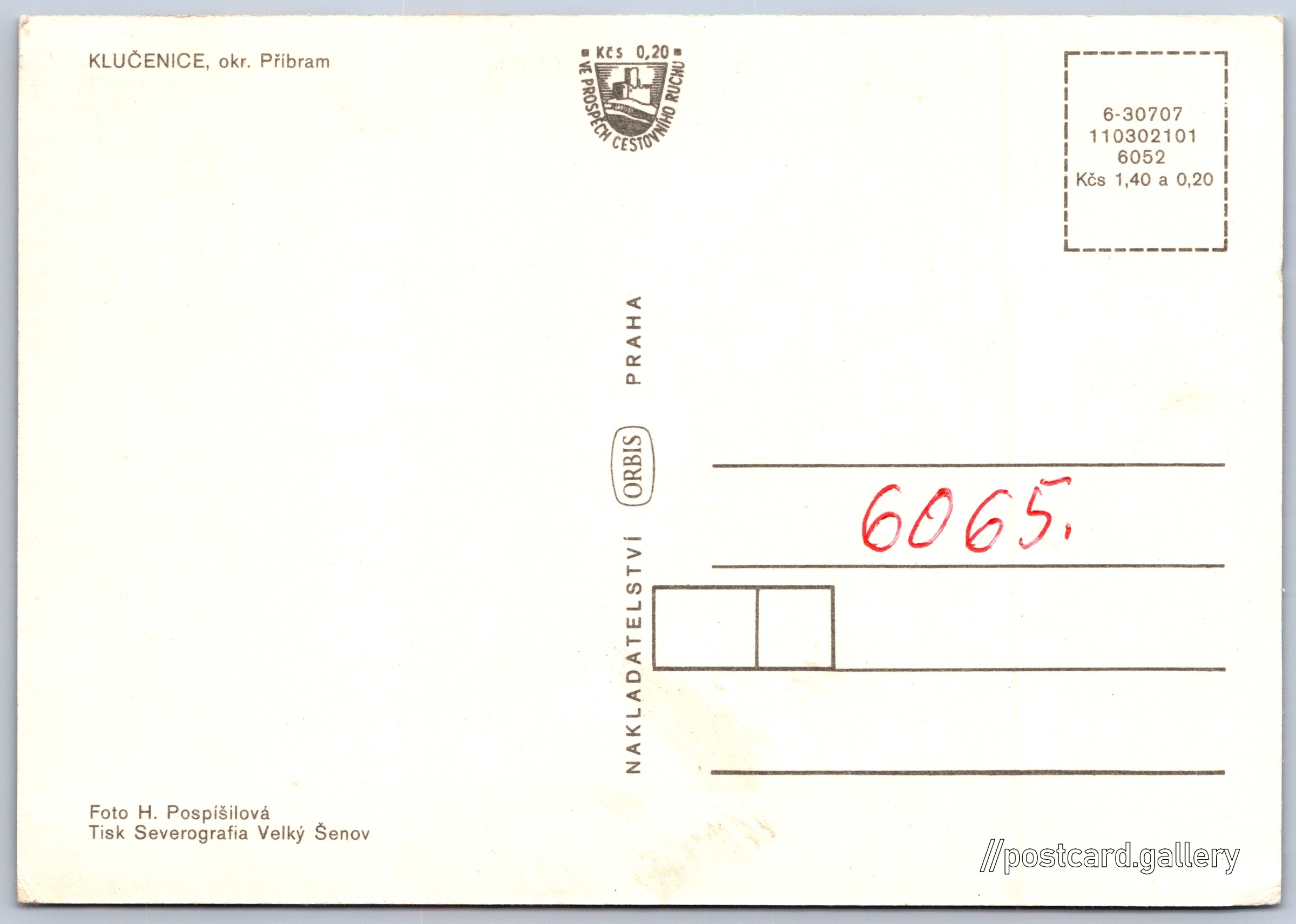 Cena pohlednice: 1,40 Kčs (CSK) (+0,20 Kčs přípl. na tur. ruch)
