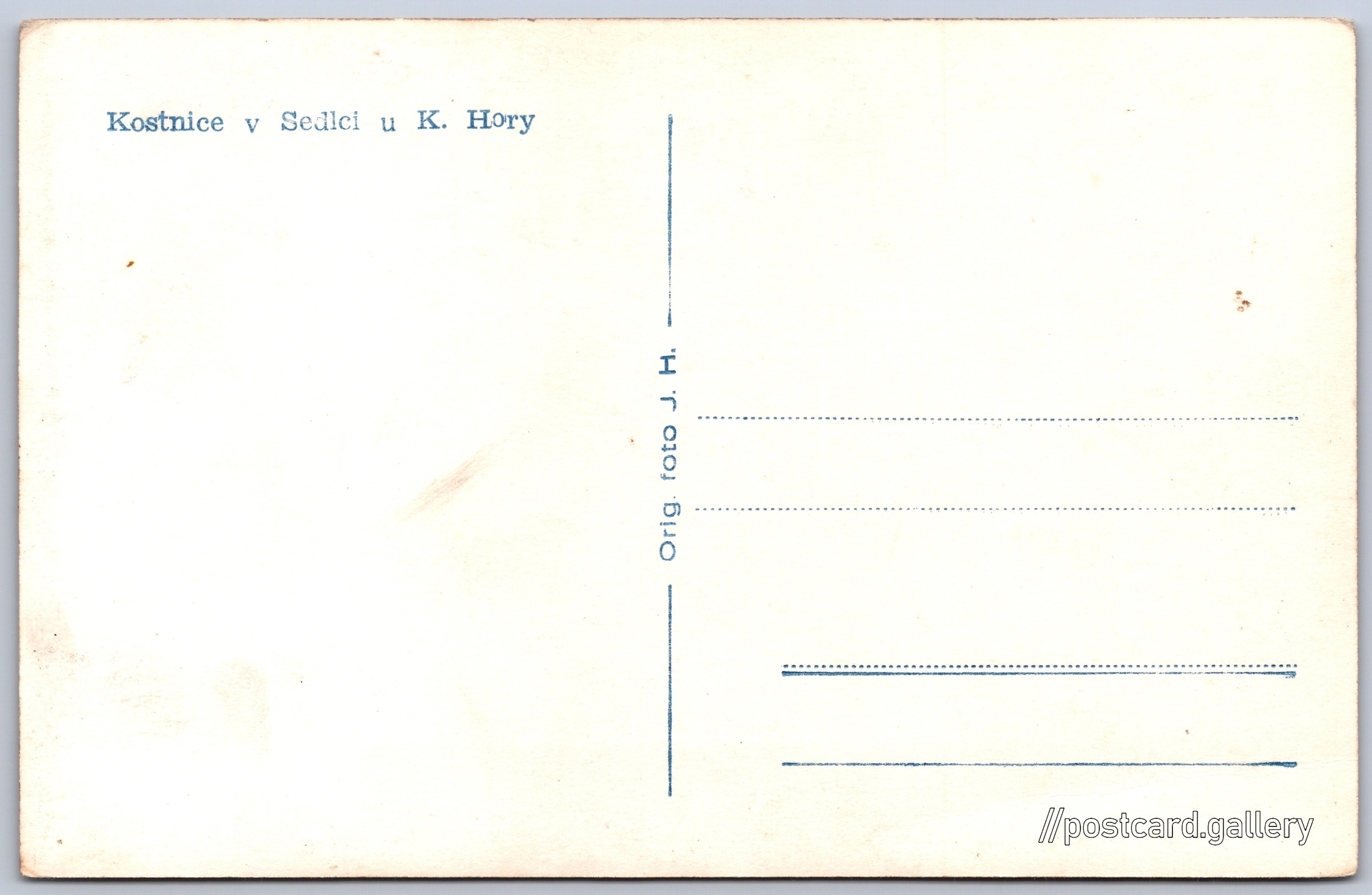 Kostnice v Sedlci u Kutné Hory Pokud chcete vidět pohlednice ve vyšším rozlišení nebo zobrazovat jejich zadní stranu, tak se prosím nejdříve přihlašte Přihlásit Zaregistrovat Kostnice v Sedlci u K. Hory Jazyk tištěného textu na pohlednici: čeština Kostnice Sedlec, Muzeum, Kutná Hora - Sedlec, Česko ukázat na mapě V blízkém okolí místa zobrazeného na pohlednici lze najít 22 jiných pohlednic. Zobrazit blízké pohlednice Datum vydání není známo Pomozte nám odhadnout datum vzniku pohlednice Velikost (š x v) a tvar pohlednice: 137 x 89 mm (5.39" x 3.50"), obdélník Čistá pohlednice (neprošlá poštou) DiskuseVložit příspěvek Přidat novou složku ... Spravovat složky ...