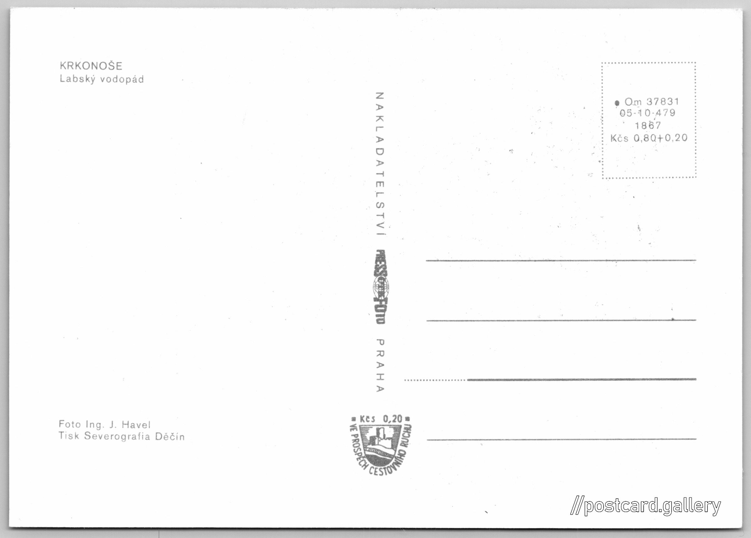 Cena pohlednice: 0,80 Kčs (CSK) (+0,20 Kčs přípl. na tur. ruch)