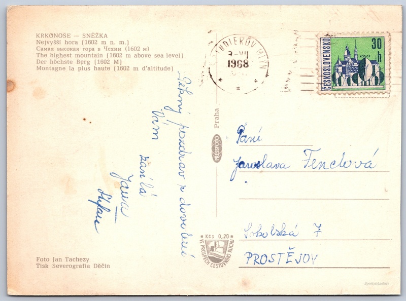 Jazyky tištěného textu na pohlednici: