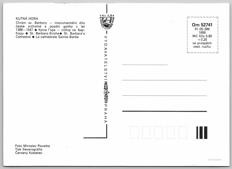 Jazyky tištěného textu na pohlednici: