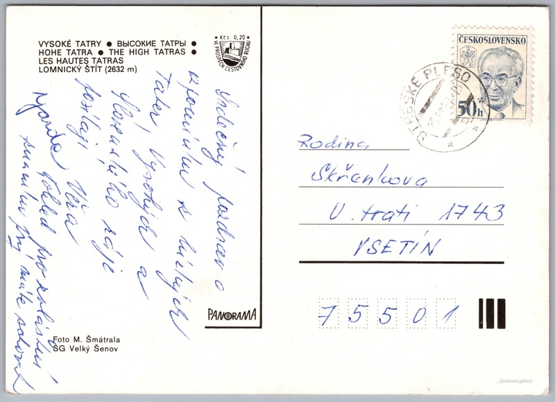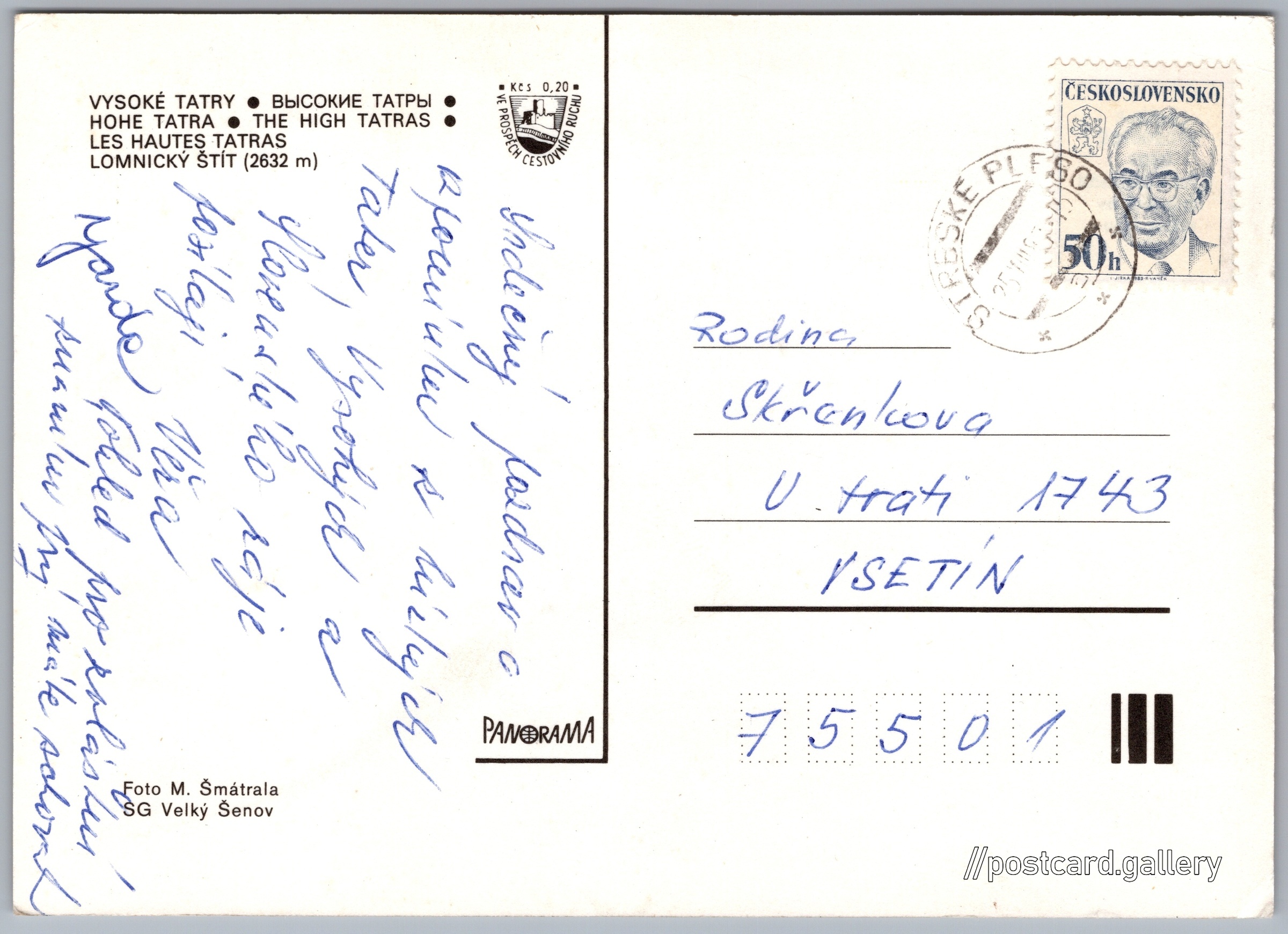 Lanovka na Lomnický štít 7/136 Pokud chcete vidět pohlednice ve vyšším rozlišení nebo zobrazovat jejich zadní stranu, tak se prosím nejdříve přihlašte Přihlásit Zaregistrovat Lomnický štít VYSOKÉ TATRY - ВЫСОКИЕ ТАТРЫHOHE TATRA - THE HIGH TATRASLES HAUTES TATRASLOMNICKÝ ŠTÍT (2632 m) Jazyk tištěného textu na pohlednici: čeština Tatranská Lomnica ukázat na mapě V blízkém okolí místa zobrazeného na pohlednici lze najít 140 jiných pohlednic. Zobrazit blízké pohlednice Vydavatel: Panorama (Československo) Datum vydání není známo Pomozte nám odhadnout datum vzniku pohlednice Velikost (š x v) a tvar pohlednice: 146 x 105 mm (5.75" x 4.13"), obdélník Osoby spjaté s touto pohlednicí: Milan Šmátrala(Autor fotografie) Prošlá poštou Ceny: Příplatek na tur. ruch: 0,20 Kčs (CSK))Vyplacené známky: 0,50 Kčs (CSK) DiskuseVložit příspěvek Přidat novou složku ... Spravovat složky ...
