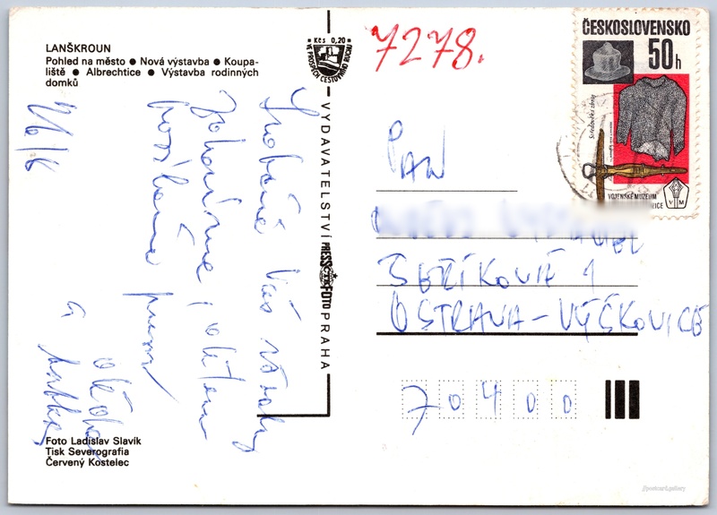 Lanškroun Pokud chcete vidět pohlednice ve vyšším rozlišení nebo zobrazovat jejich zadní stranu, tak se prosím nejdříve přihlašte Přihlásit Zaregistrovat Lanškroun LANŠKROUN- Pohled na město- Nová výstavba- Koupaliště- Albrechtice- Výstavba rodinných domků Jazyk tištěného textu na pohlednici: čeština Lanškroun, Město, Česko ukázat na mapě Vydavatel: PressFoto Praha (Československo) Datum vydání není známo Pomozte nám odhadnout datum vzniku pohlednice Velikost (š x v) a tvar pohlednice: 148 x 105 mm (5.83" x 4.13"), obdélník Osoby spjaté s touto pohlednicí: Ladislav Slavík(Autor fotografie) Prošlá poštou Ceny: Příplatek na tur. ruch: 0,20 Kčs (CSK))Vyplacené známky: 0,50 Kčs (CSK) DiskuseVložit příspěvek Přidat novou složku ... Spravovat složky ...